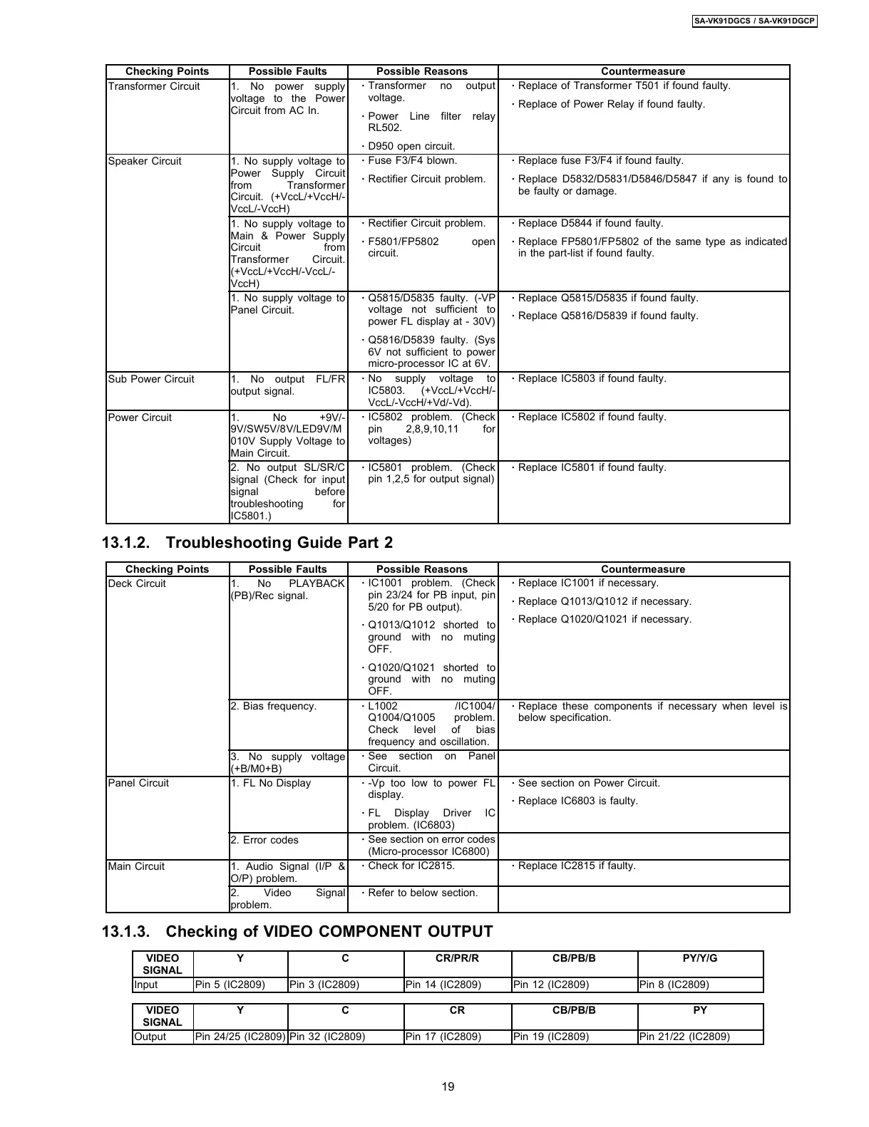 13.1.3. Checking of VIDEO COMPONENT OUTPUT