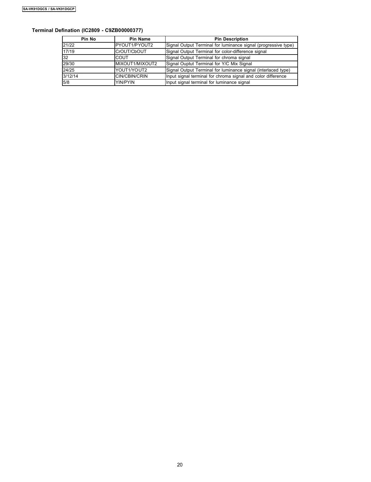21/22 PYOUT1/PYOUT2 Signal Output Terminal for luminance signal (progressive type)