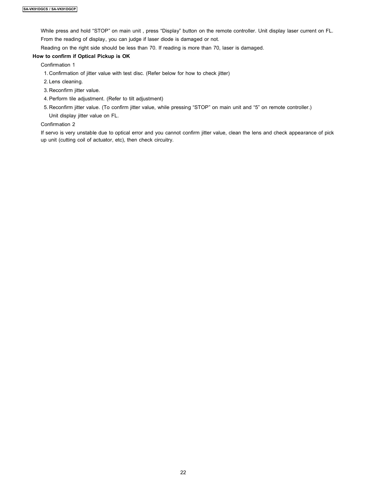 1. Confirmation of jitter value with test disc. (Refer below for how to check jitter)