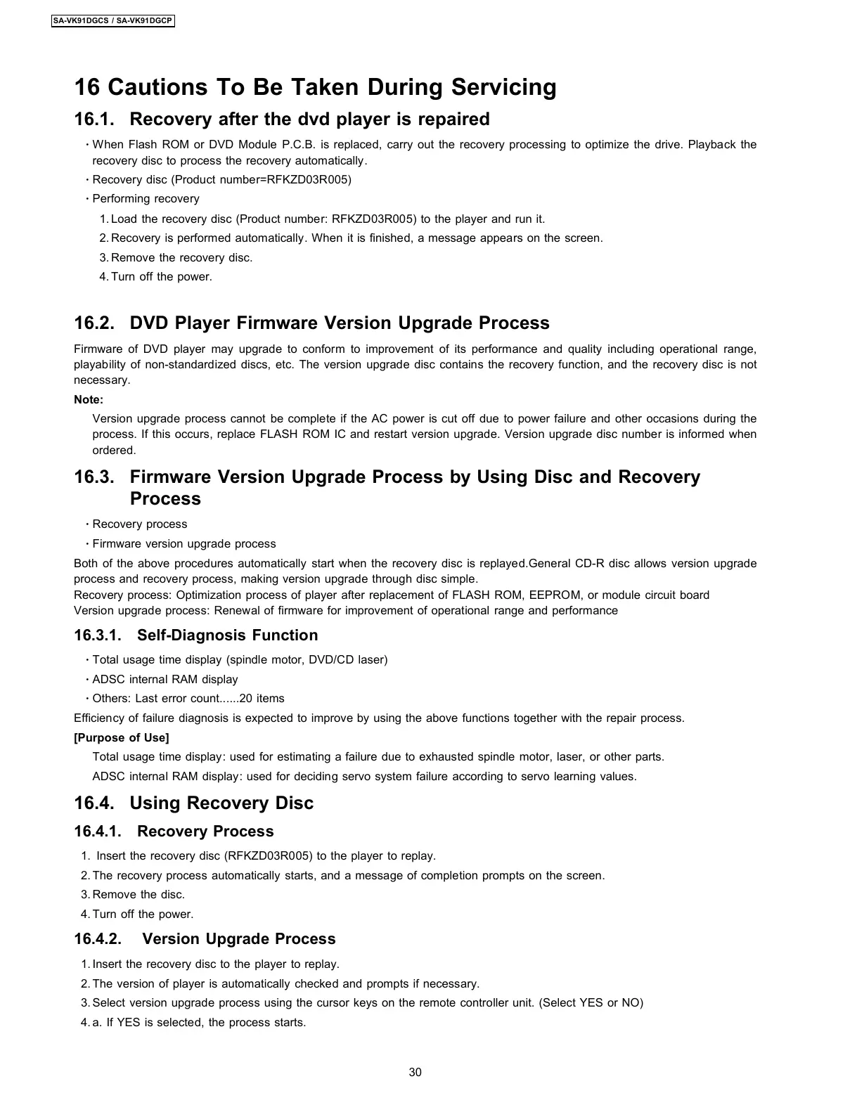 1. Insert the recovery disc (RFKZD03R005) to the player to replay.