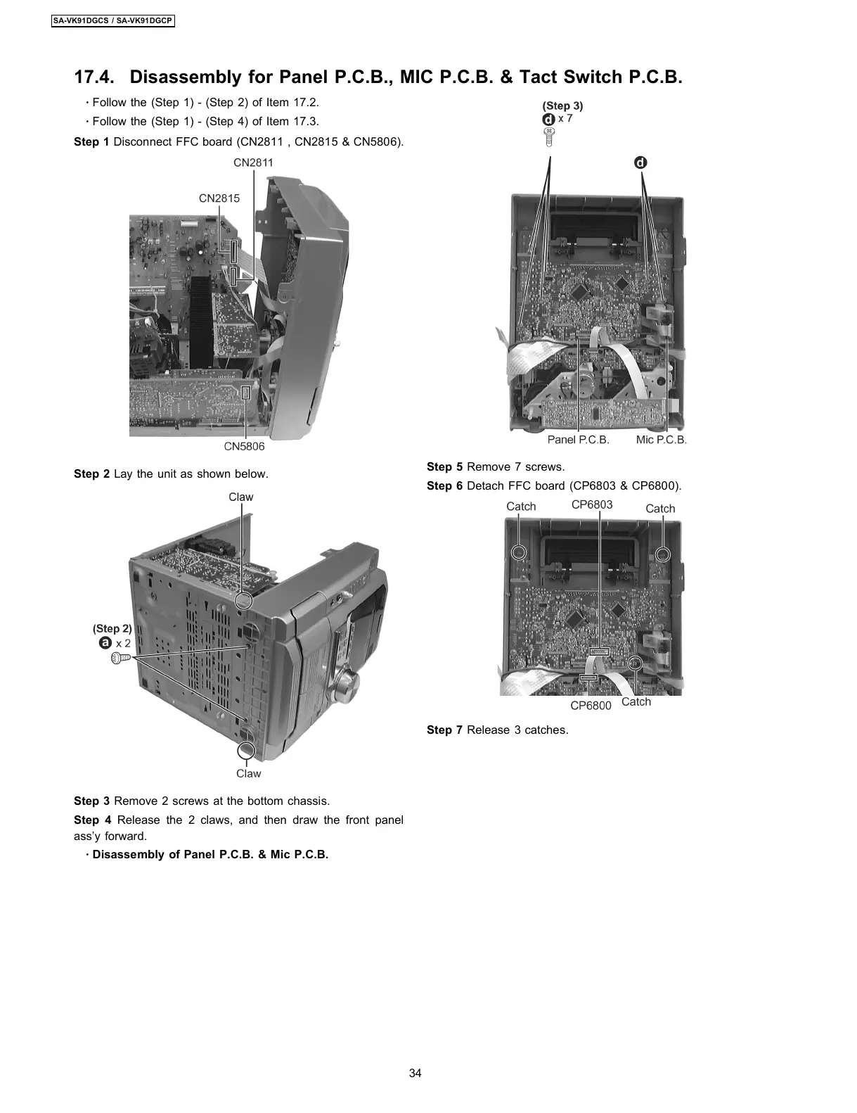 17.4. Disassembly for Panel P.C.B., MIC P.C.B. & Tact Switch P.C.B.