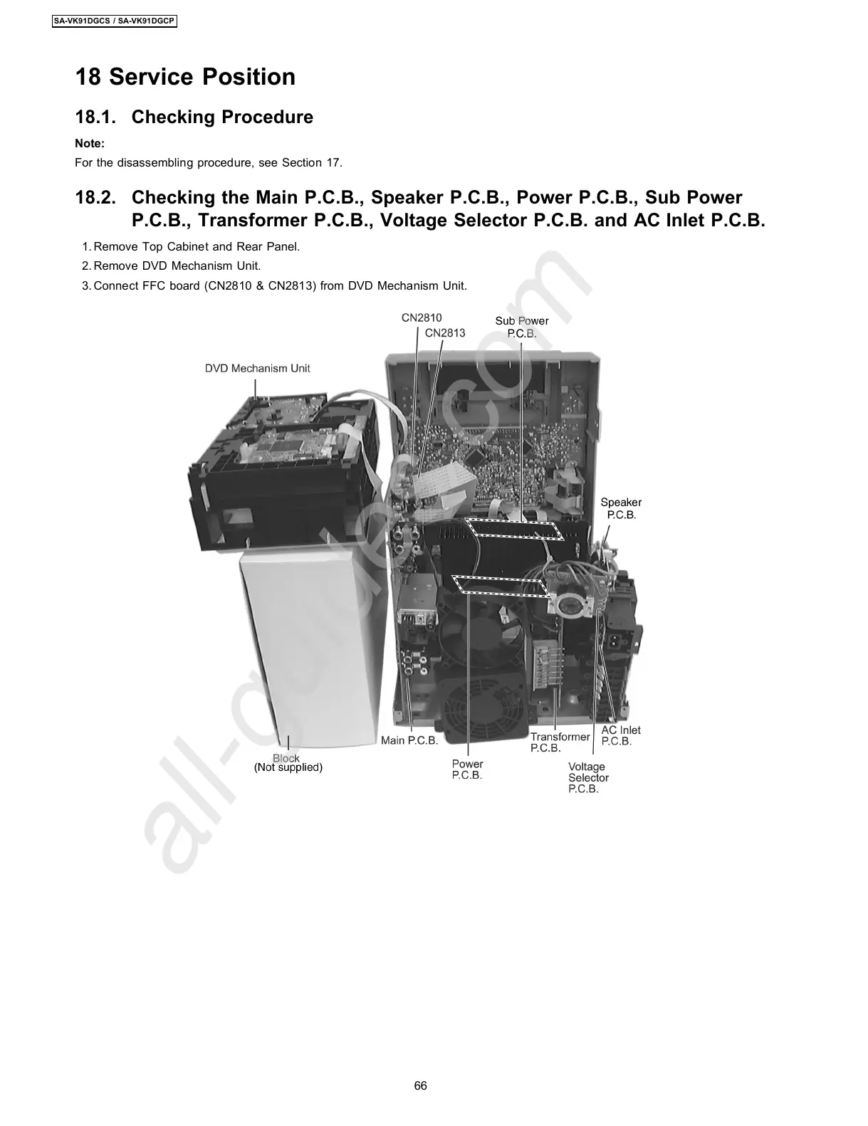 18.2. Checking the Main P.C.B., Speaker P.C.B., Power P.C.B., Sub Power