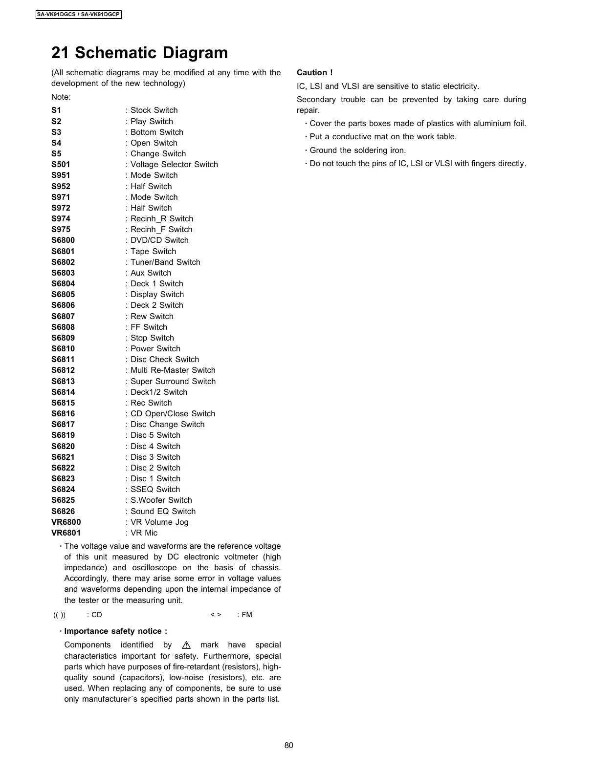 SA-VK91DGCS / SA-VK91DGCP