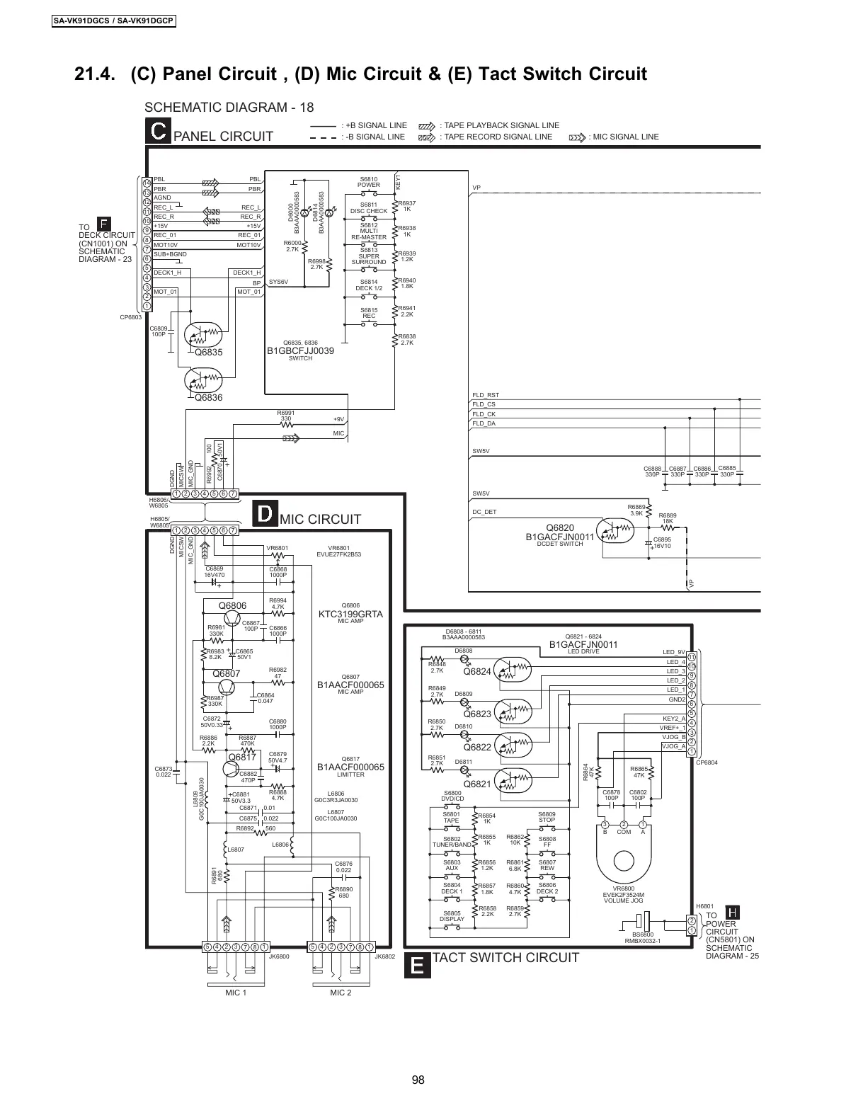 Panasonic SA-VK91DGCS - C) Panel Circuit, (D) MIC Circuit & (E) Tact Switch Circuit