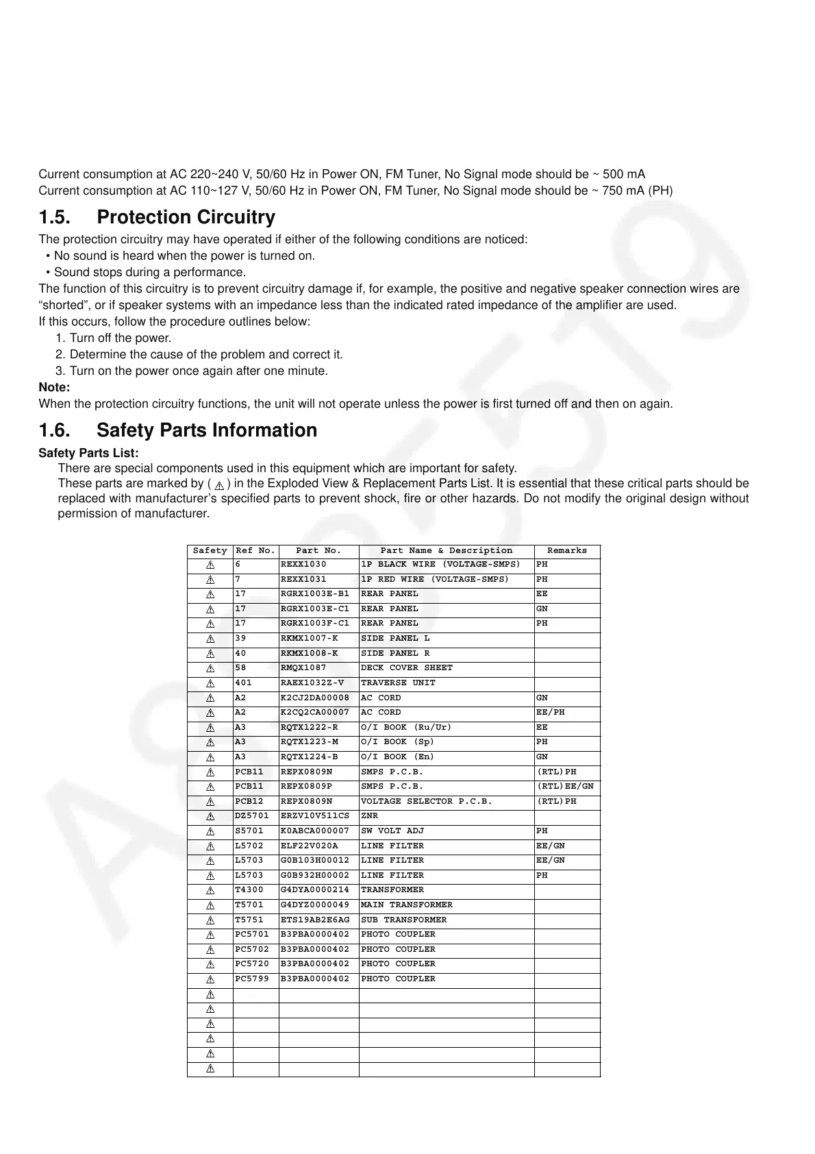 These parts are marked by ( ) in the Exploded View & Replacement Parts List. It is essential that these critical parts should be