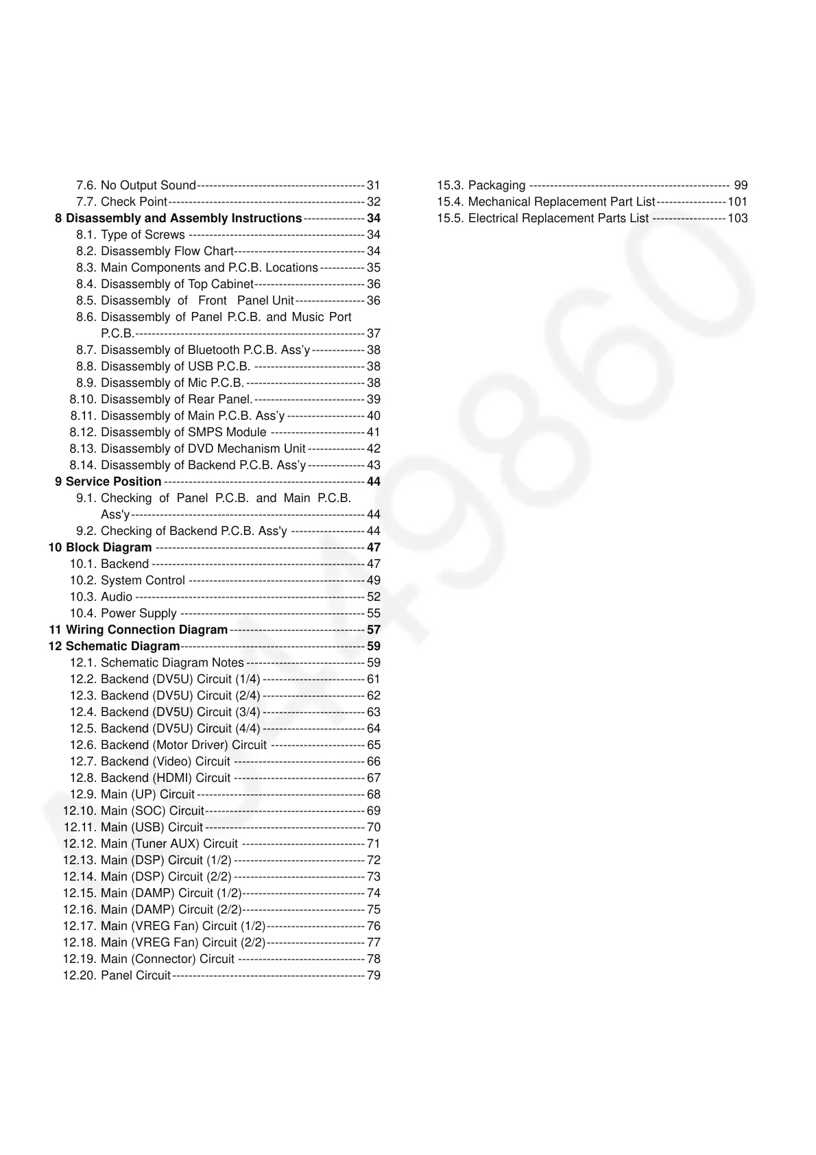 8.14. Disassembly of Backend P.C.B. Ass’y--------------43