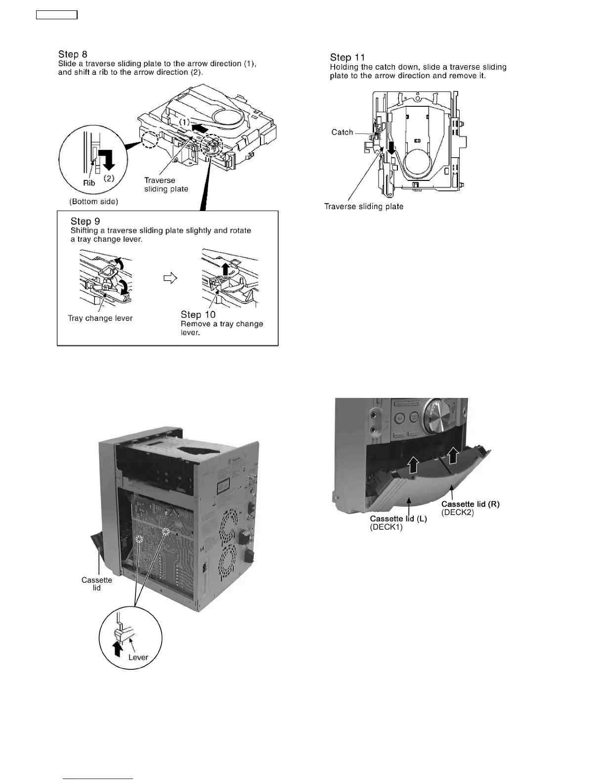Step 1 Lift up the lever upward, open the cassette deck. (For