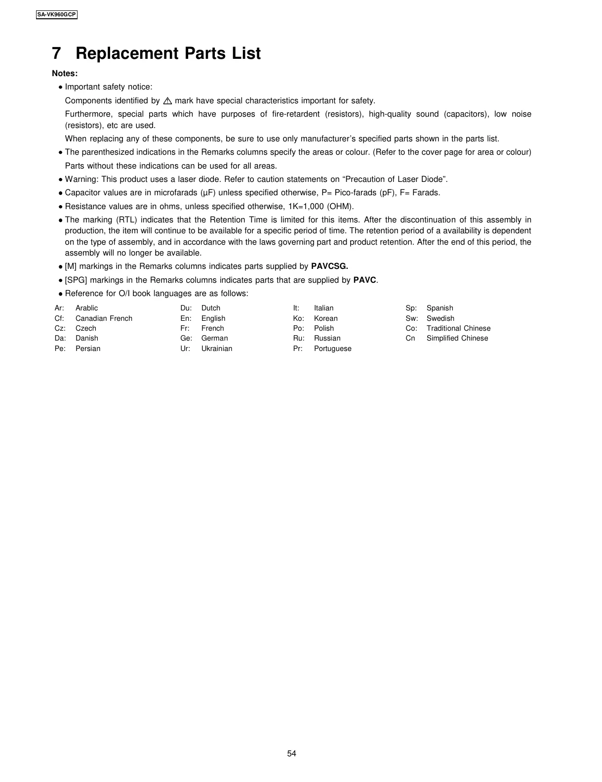 • [SPG] markings in the Remarks columns indicates parts that are supplied by PAVC.