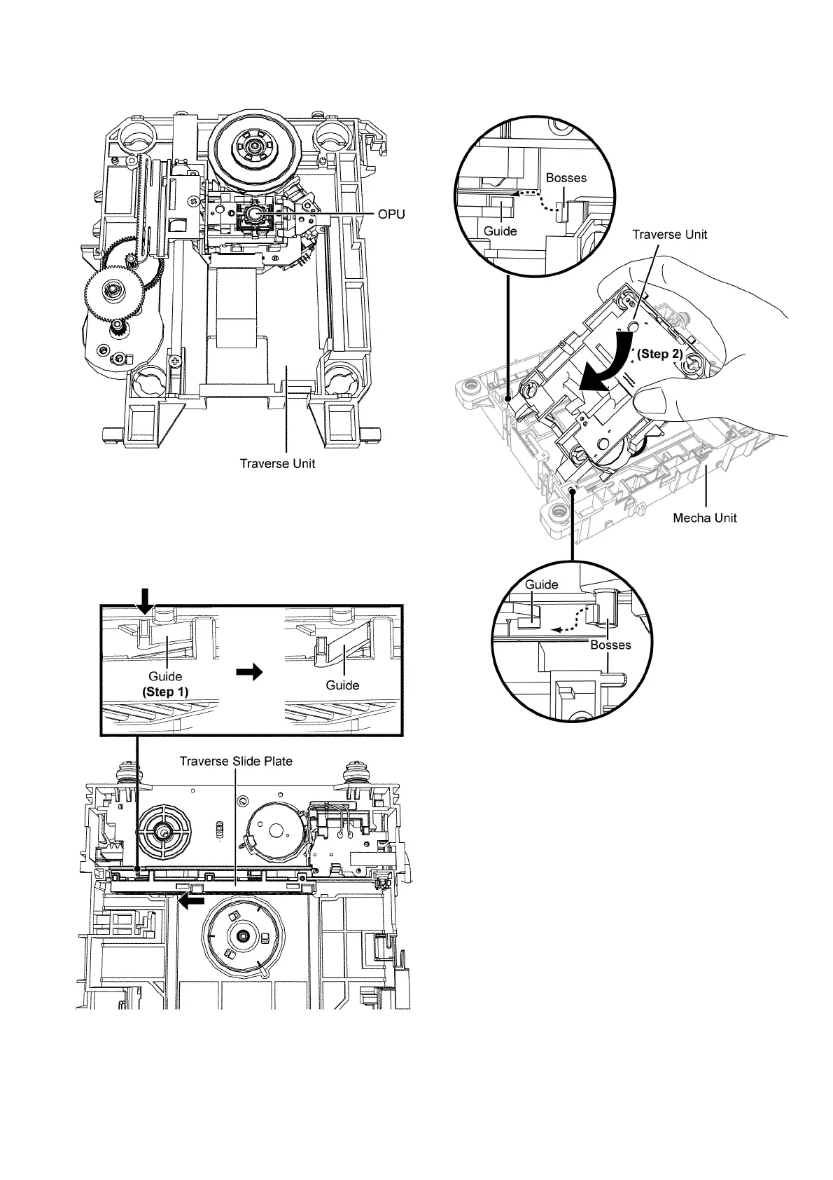 Step 1 : Release the guide as shown & slide Traverse Slide
