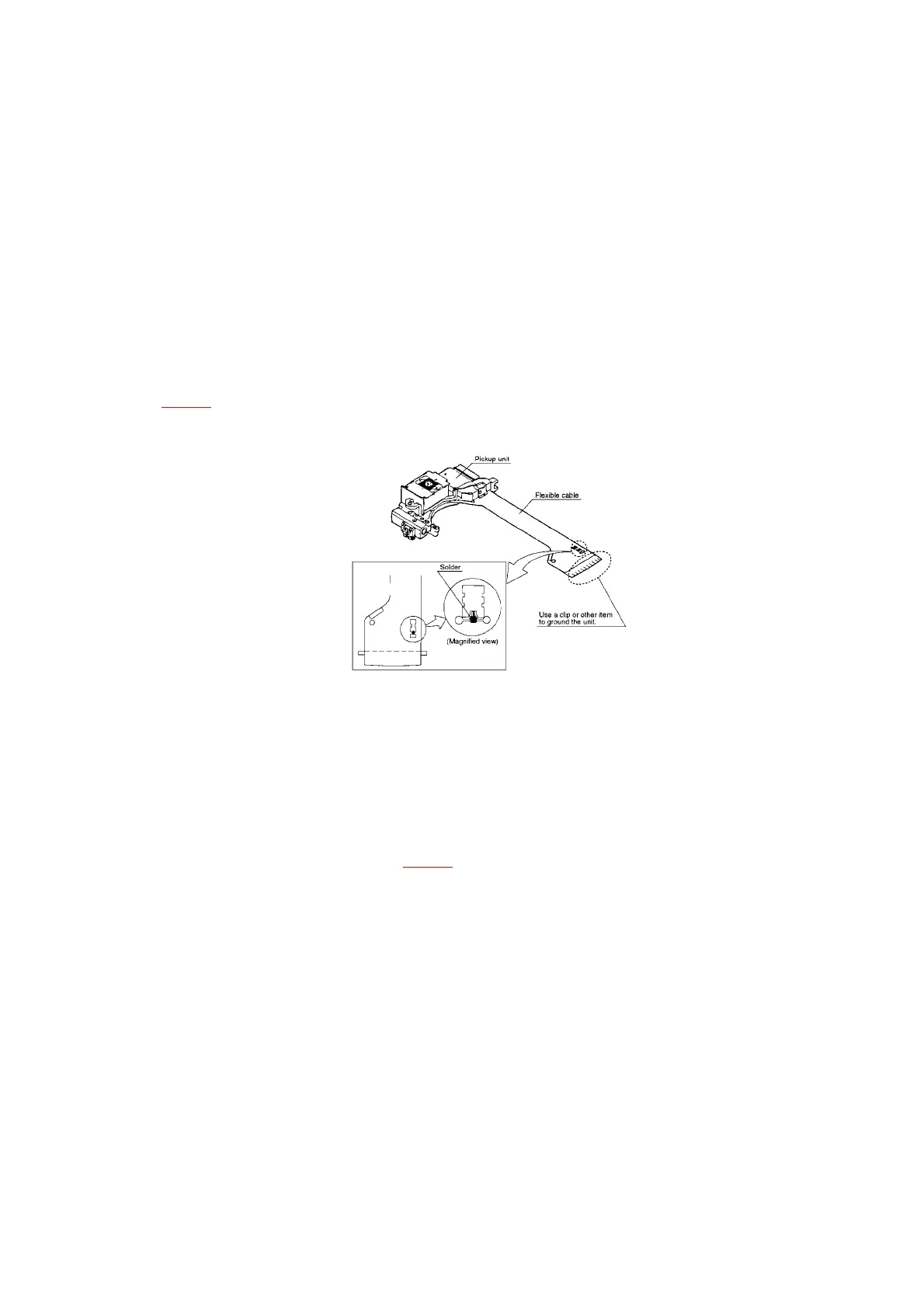 a short pin or similar tool to short the optical pickup’s flexible