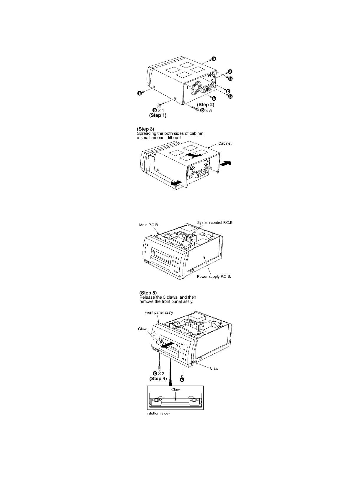 - Check the main P.C.B., power supply P.C.B. and system control