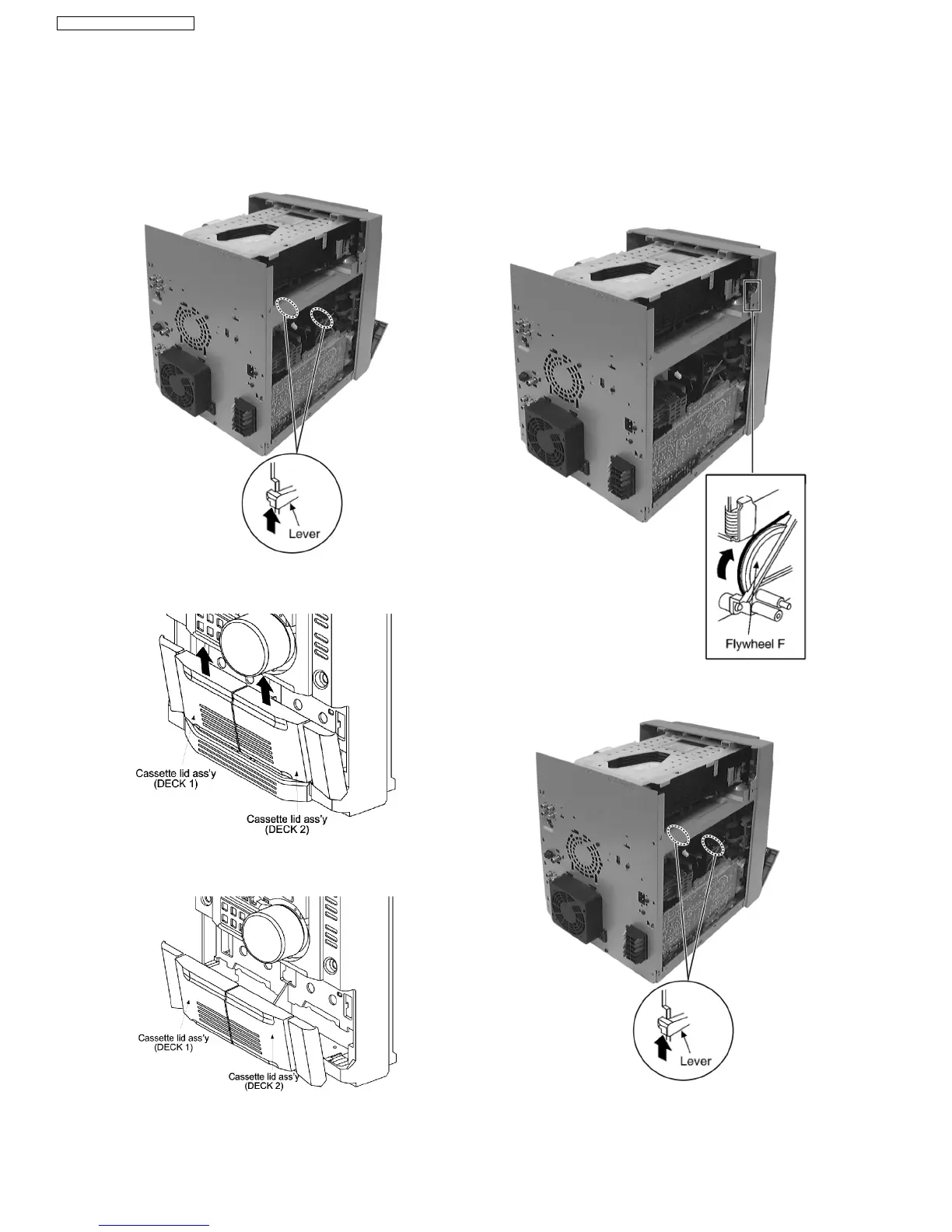 Step 3 Remove the cassette lid ass’y. (For DECK1 and