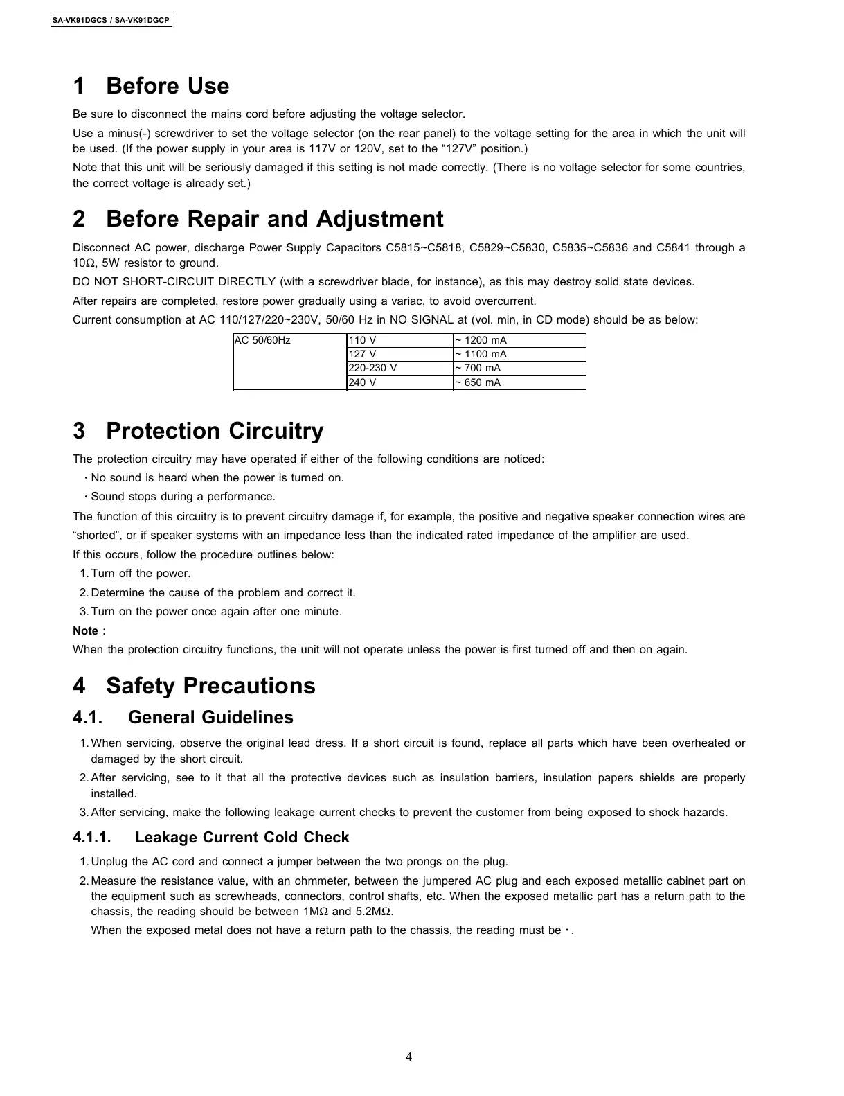 Current consumption at AC 110/127/220~230V, 50/60 Hz in NO SIGNAL at (vol. min, in CD mode) should be as below: