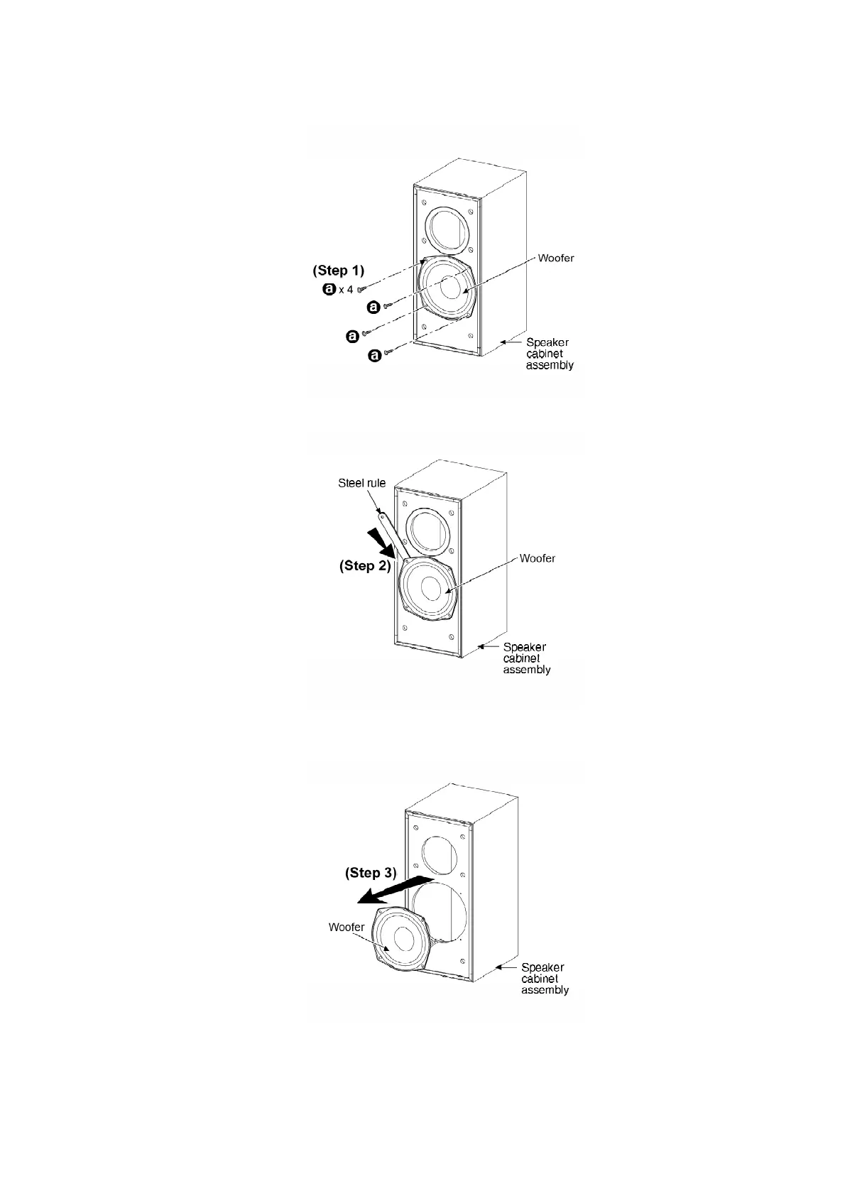 Step 2: Insert a steel rule between the woofer and speaker cabinet assembly to push out the