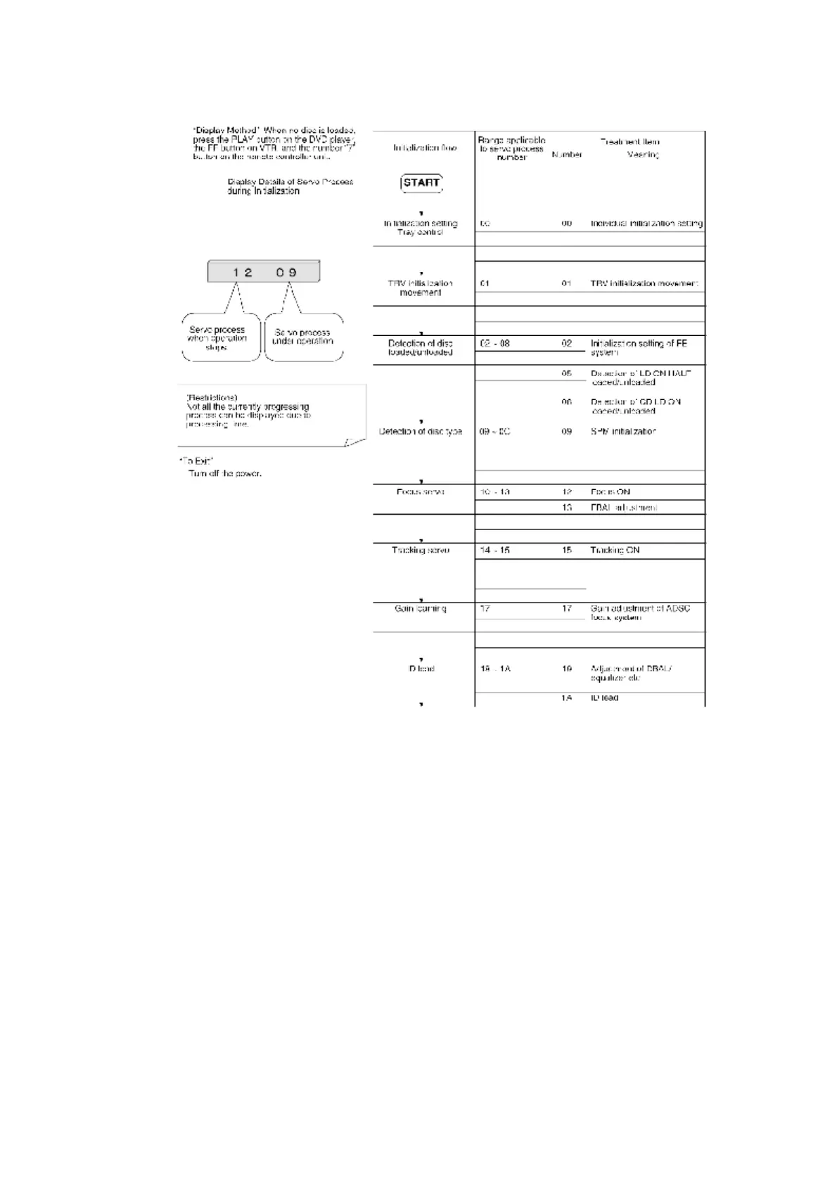initialization.Following table shows each process applicable to displayed numbers.