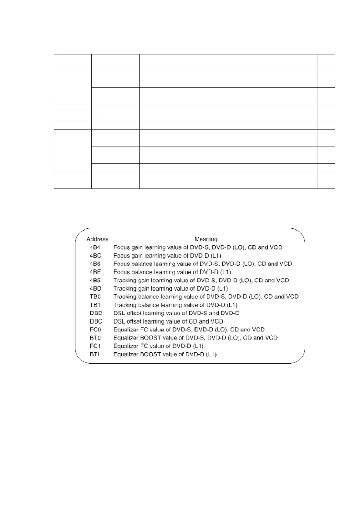 quality of servo operation, disc, and OPU.Followings are commonly displayed addresses: