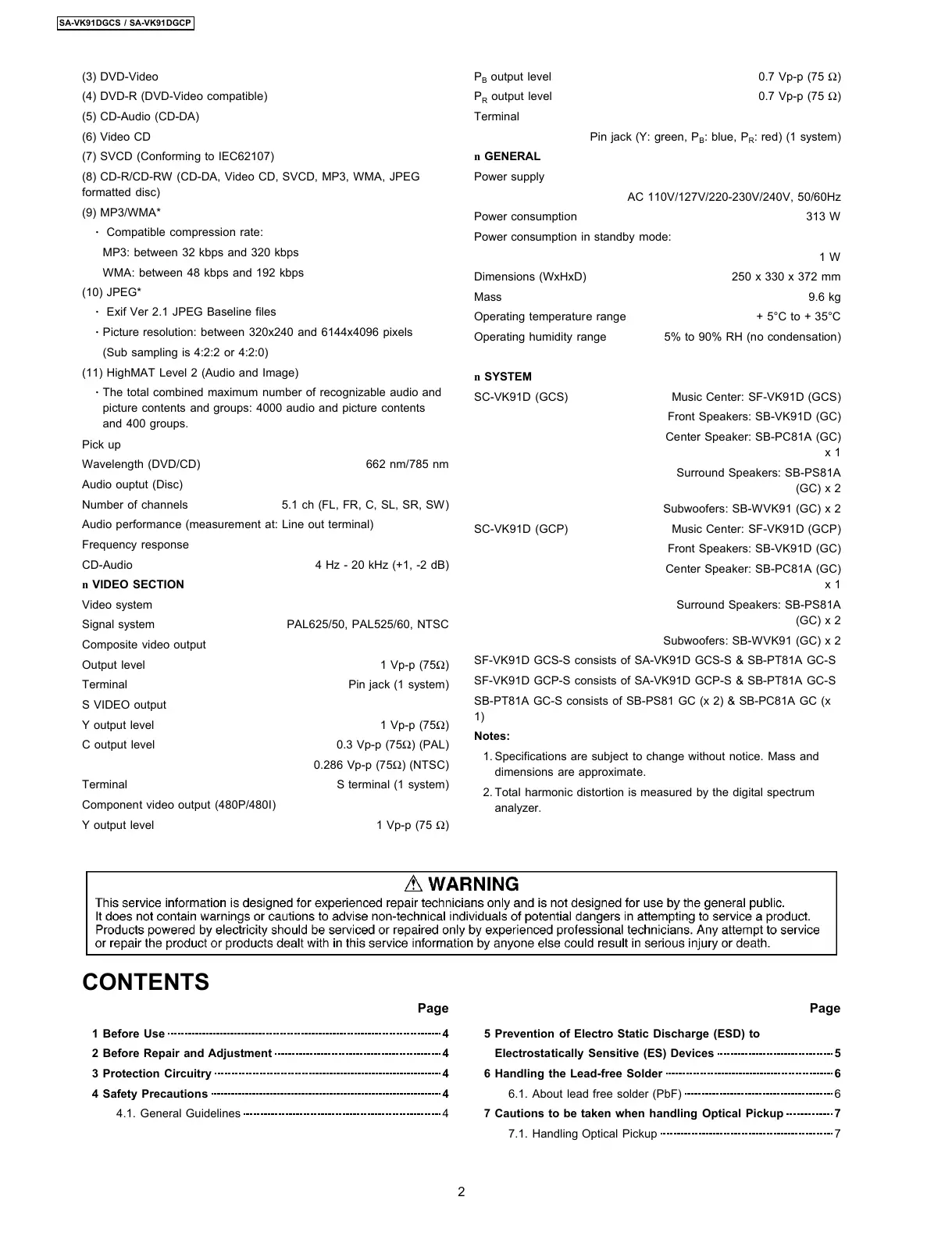 SC-VK91D (GCS) Music Center: SF-VK91D (GCS)