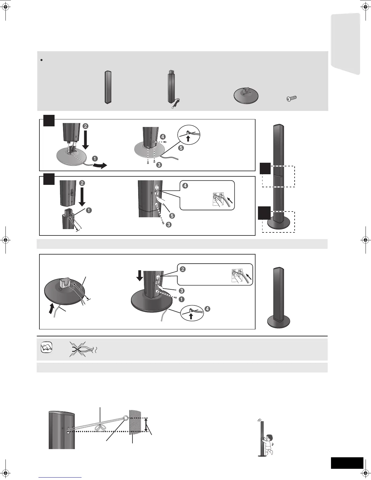 ≥Be careful not to cross (short-circuit) or reverse the polarity of the speaker wires as doing so may damage the