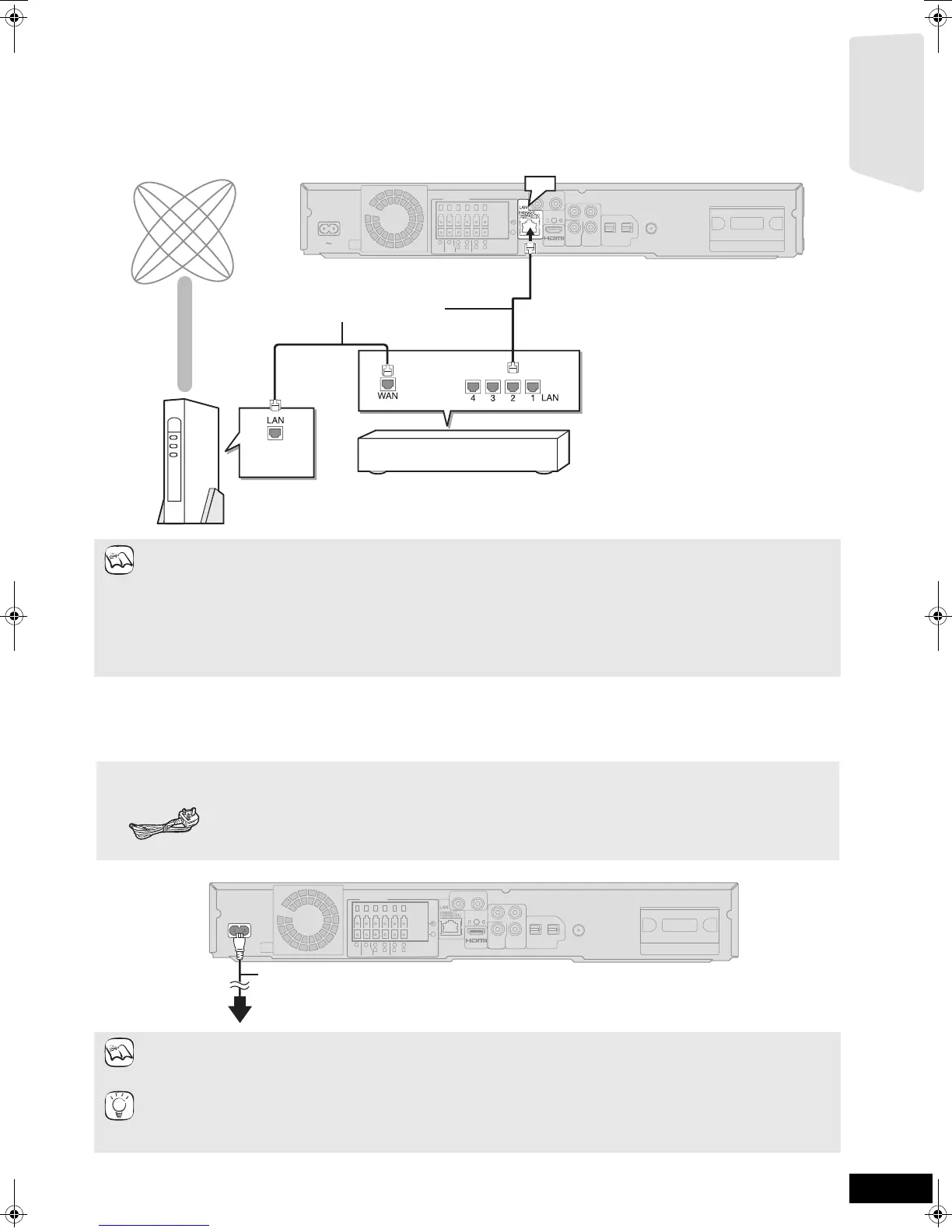 ≥When your communication equipment (modem), etc. has no broadband router functions: Connect a broadband router.