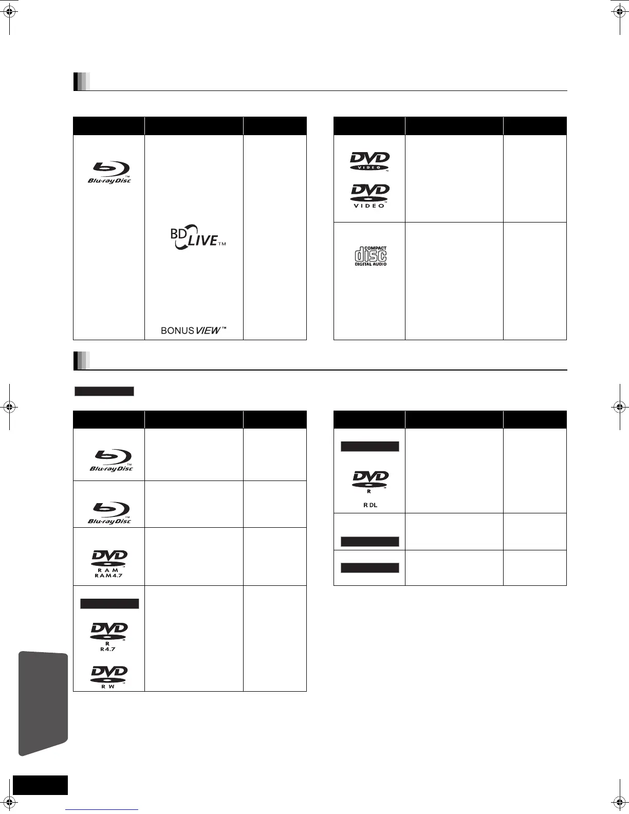 This chart shows the different type of retail/commercial discs you can use, and also includes the industry-standard logos that should appear on