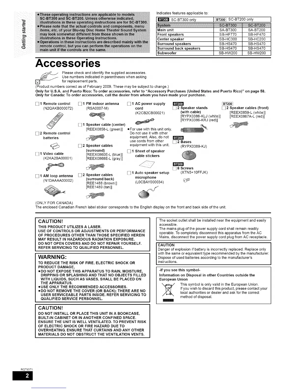 Only for Canada: To order accessories, call the dealer from whom you have made your purchase.