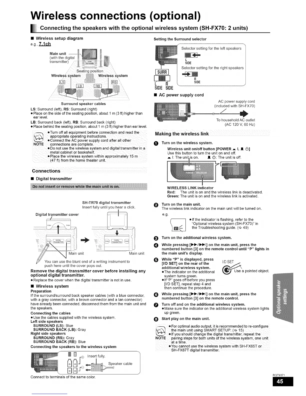 Connecting the speakers with the optional wireless system (SH-FX70:2 units)