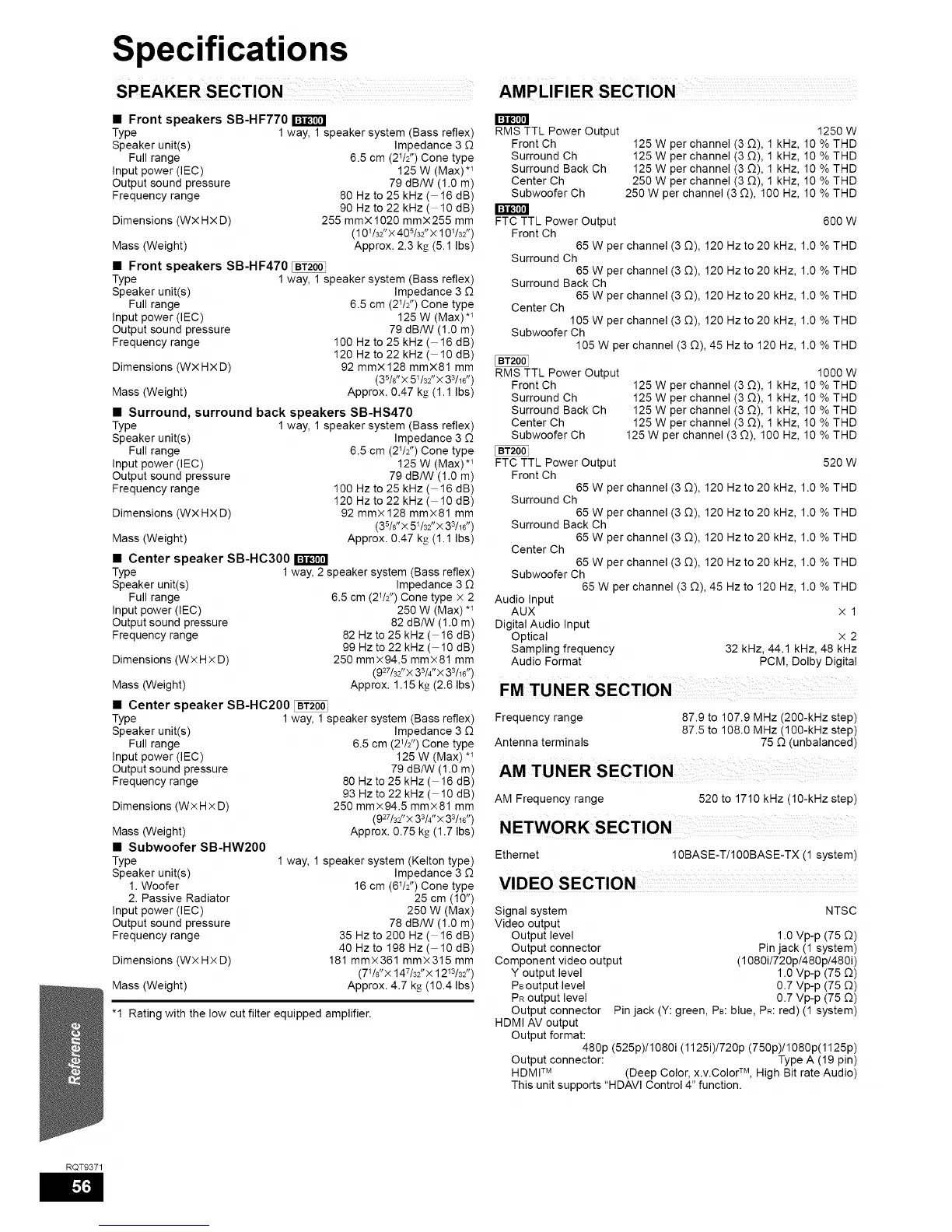 65 W per channel (3 D), 45 Hz to 120 Hz, 1.0 % THD