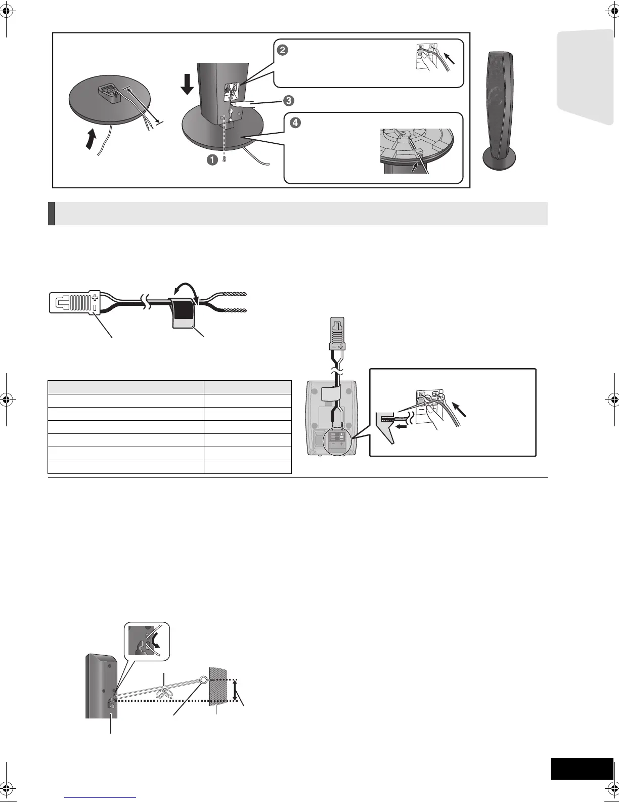 ≥ To avoid injury by falling or dropping the speaker, place the speaker cables with care not to stumble or hook.