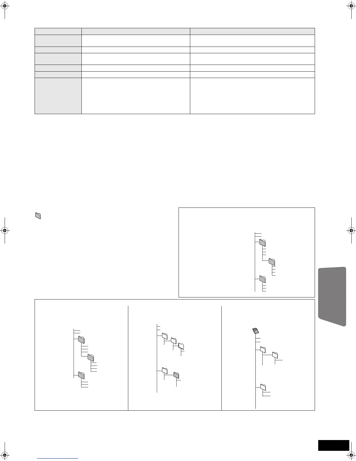You can play files on this unit by structure of folders as shown below. However depending on the method of writing data (writing
