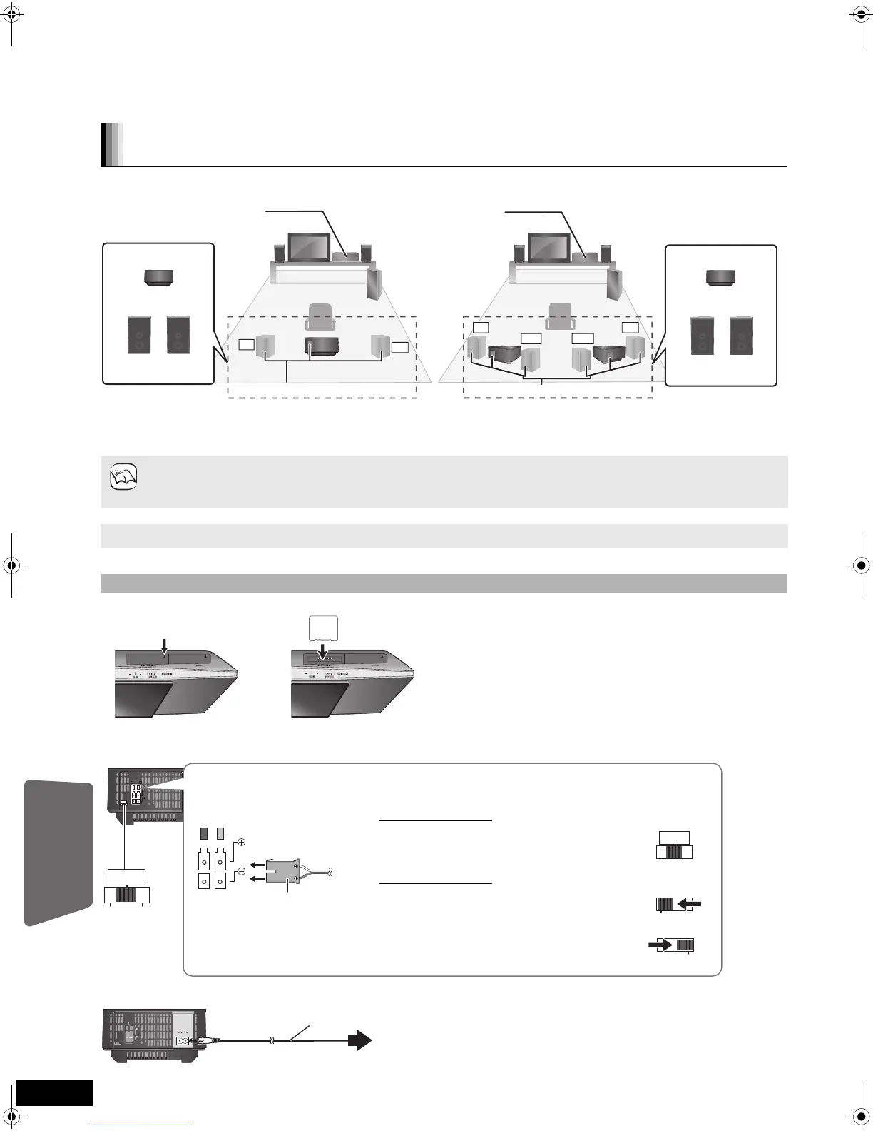 By connecting 1 or 2 units of the optional Panasonic wireless system SH-FX70 with 2 or 4 additional speakers, it is possible to change this unit