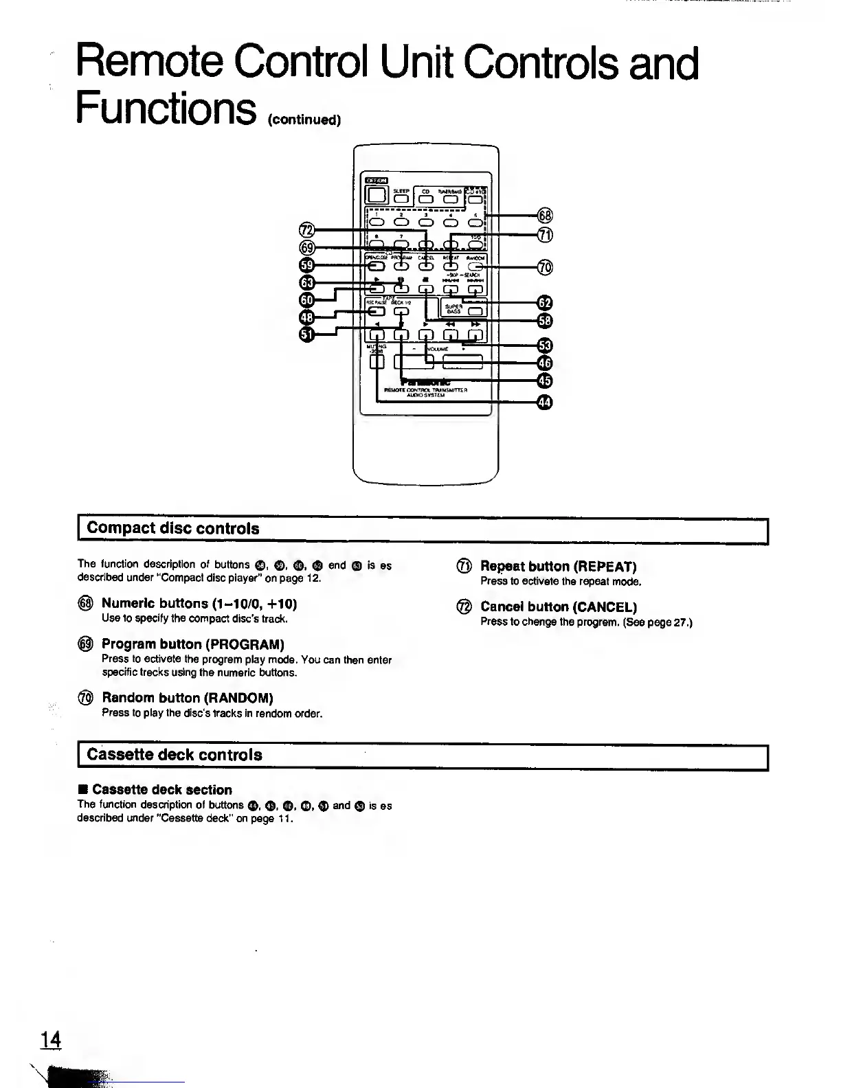Panasonic SC-CH11 - Compact Disc Controls; Cassette Deck Controls