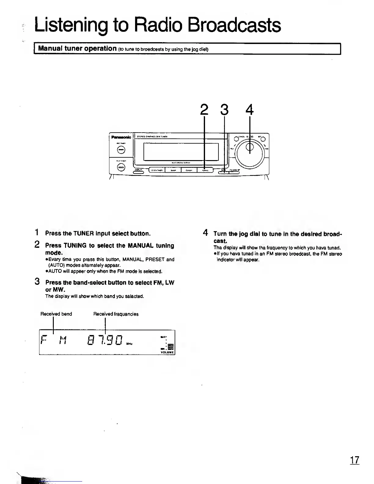 Manual tuner operation (to tune to broadcasts by using the