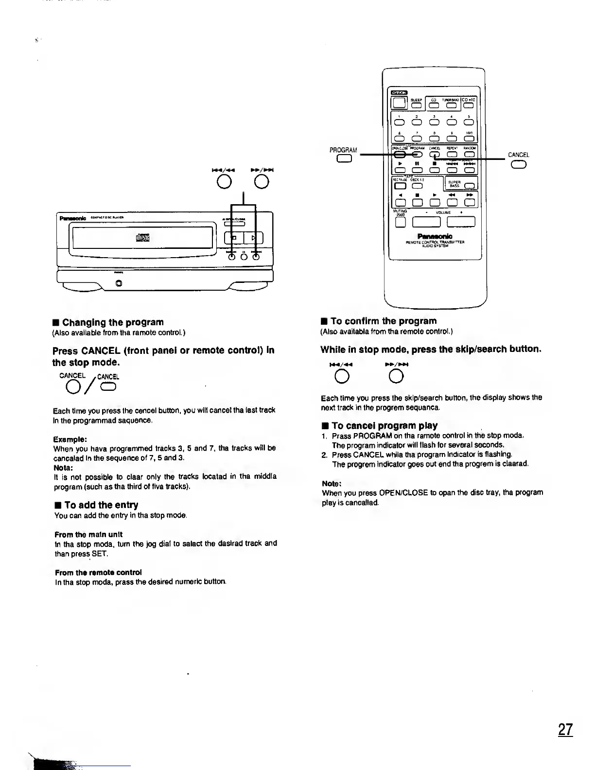 Panasonic SC-CH11 - Changing the Program; To Confirm the Program; To Cancel Program Play