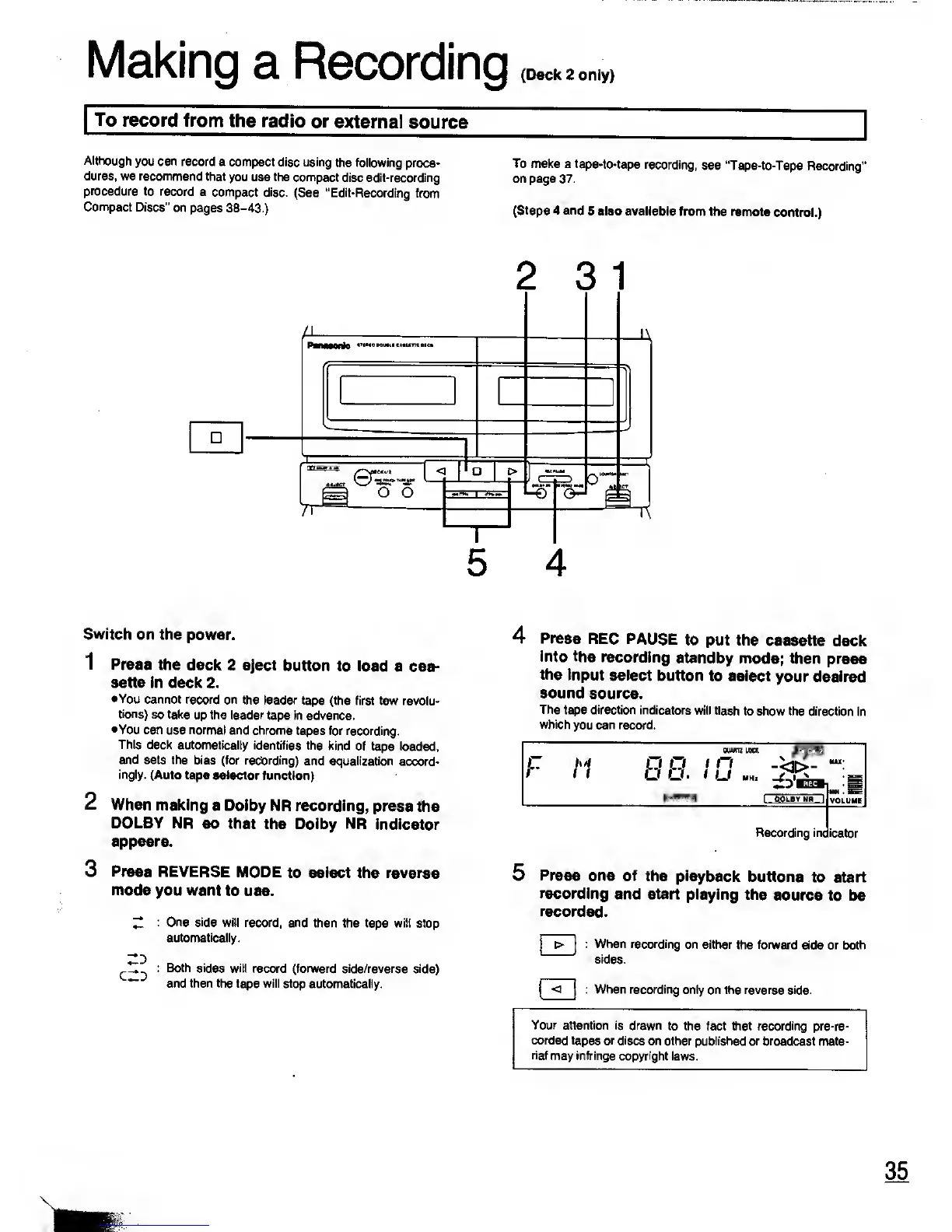 Panasonic SC-CH11 - Making a Recording (Deck 2 only)