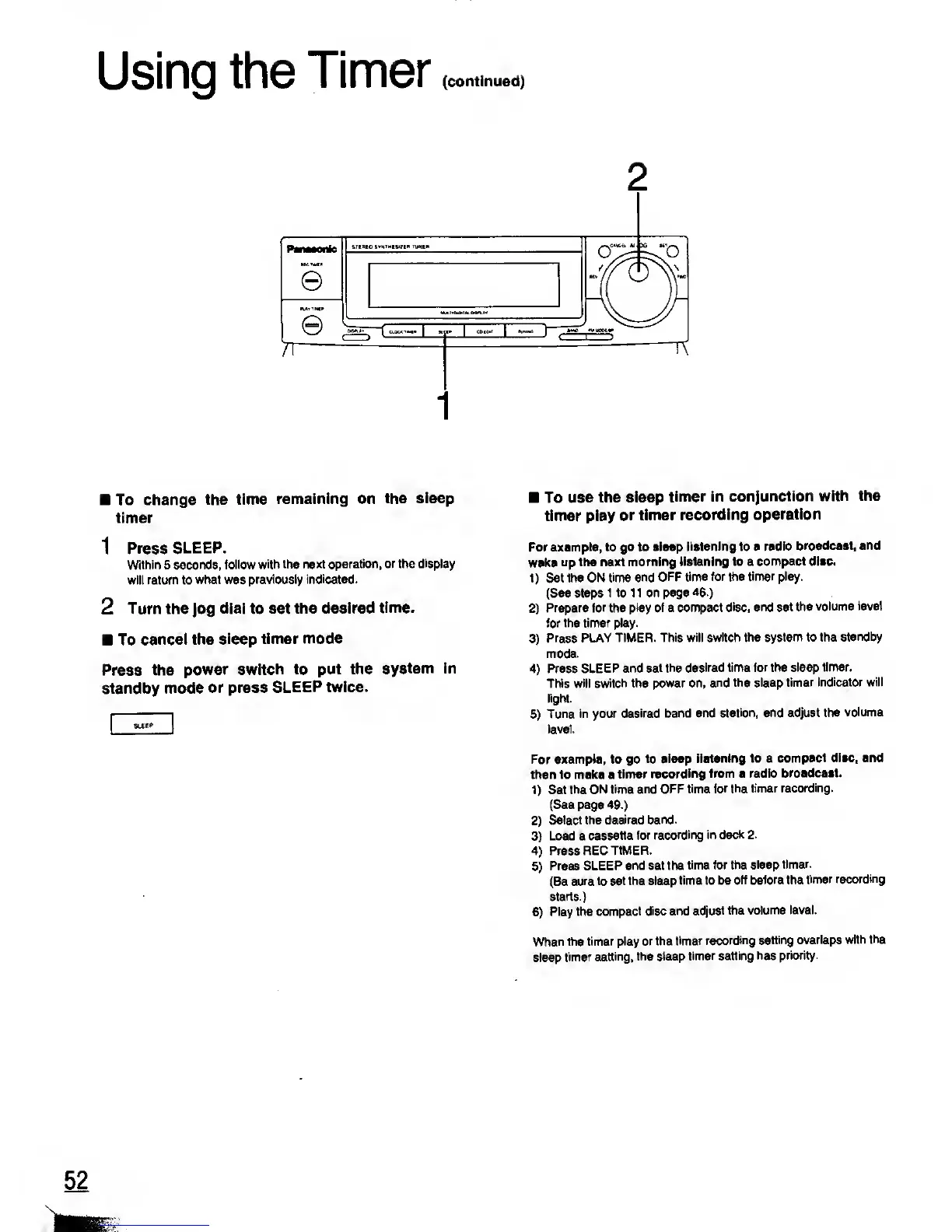Panasonic SC-CH11 - To Change the Time Remaining on the Sleep Timer; To Cancel the Sleep Timer Mode; To Use Sleep Timer with Timer Play or Recording