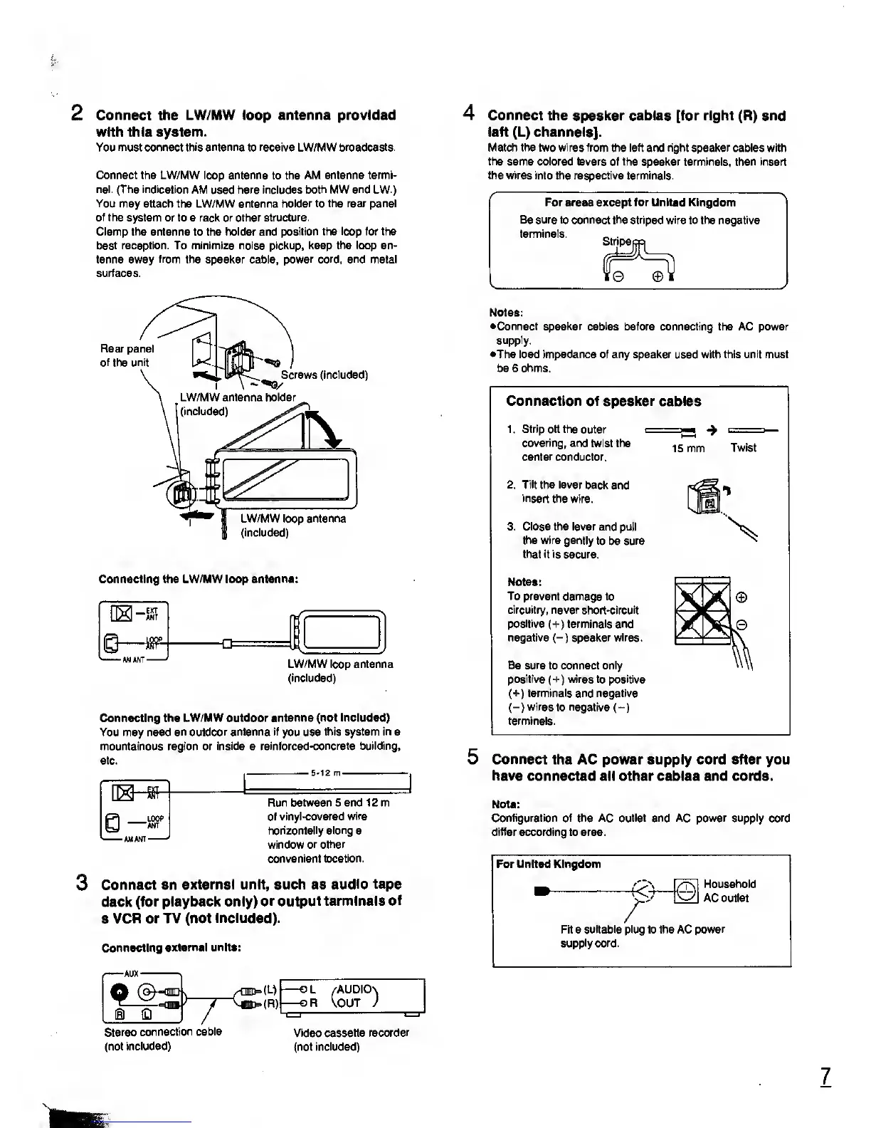 •Connect speaker cables