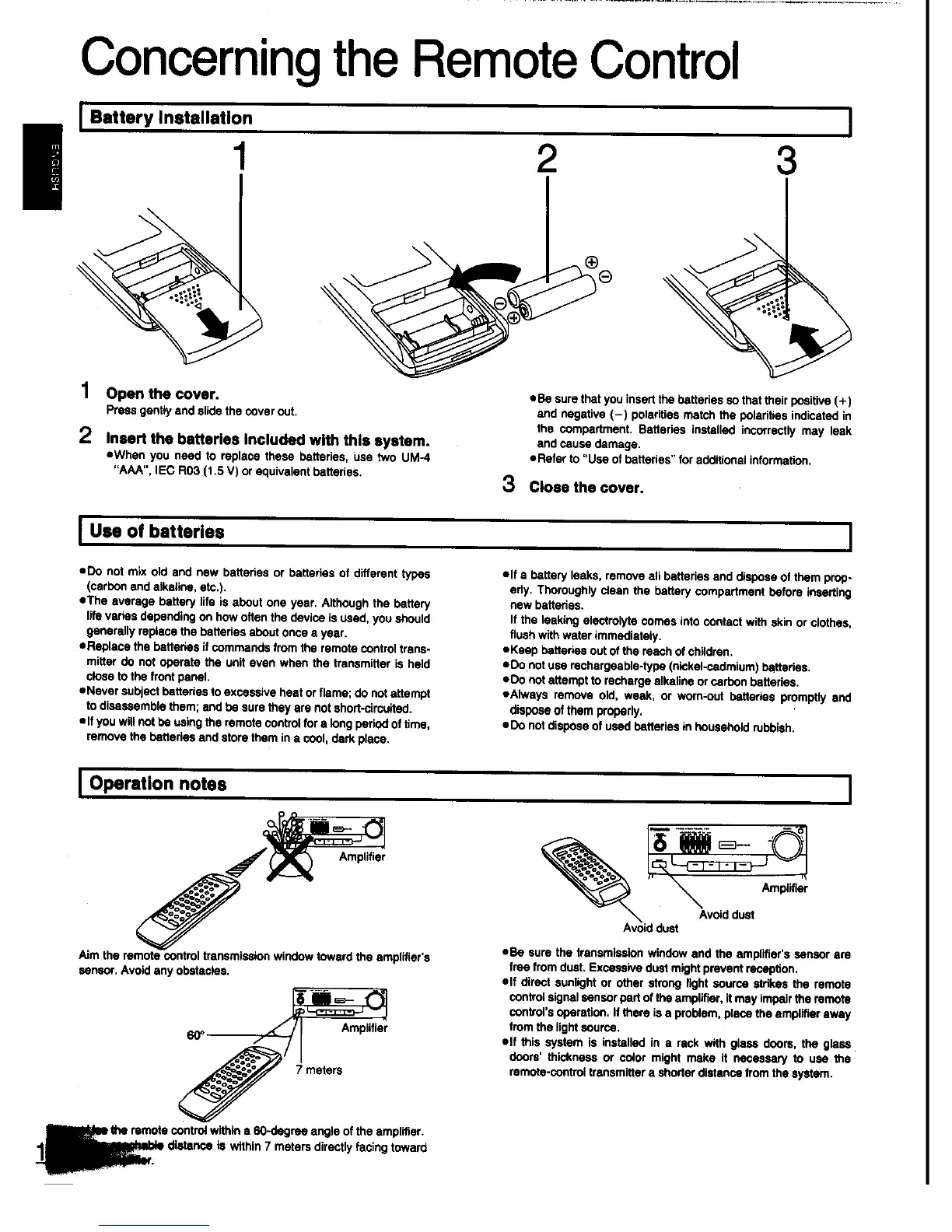 Panasonic SC-CH31 - Concerning the Remote Control; Battery Installation; Use of Batteries; Operation Notes