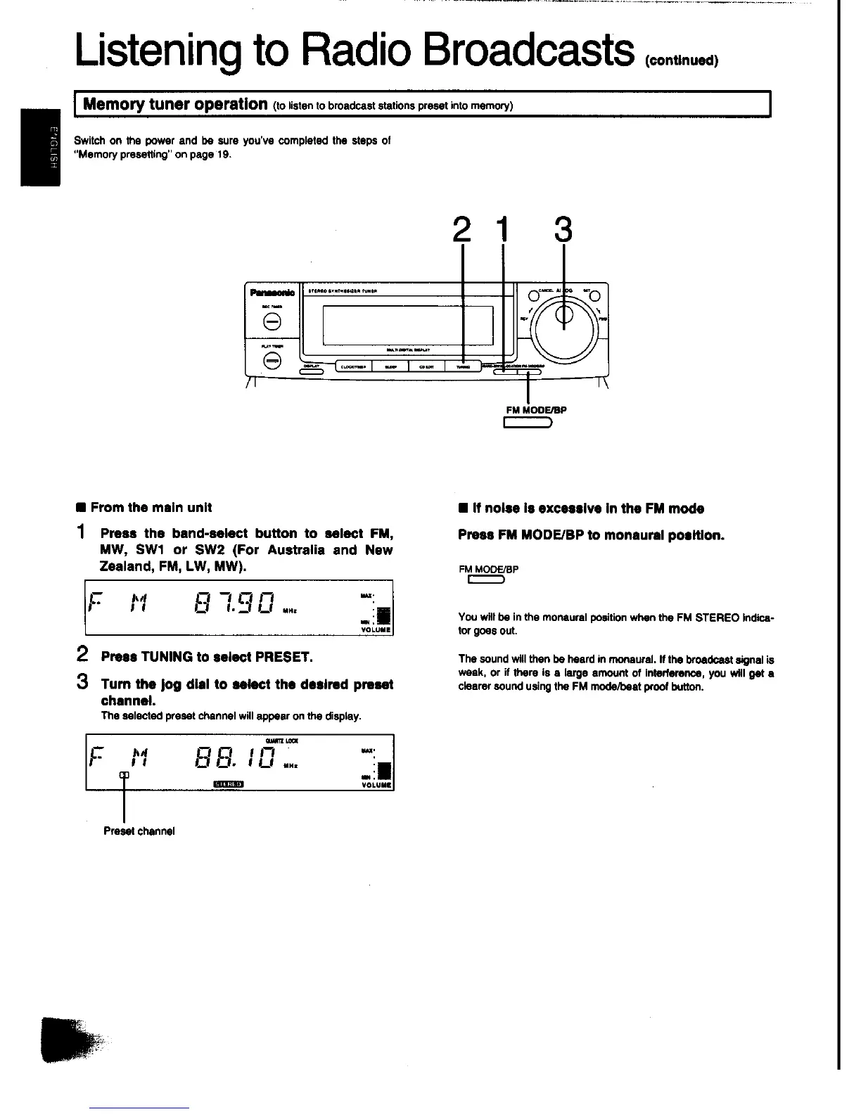 Panasonic SC-CH31 - Memory Tuner Operation
