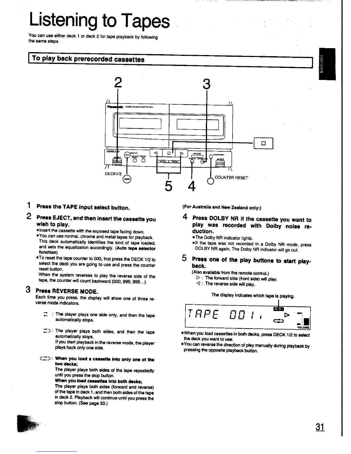 Panasonic SC-CH31 - Listening to Tapes; To Play Back Prerecorded Cassettes