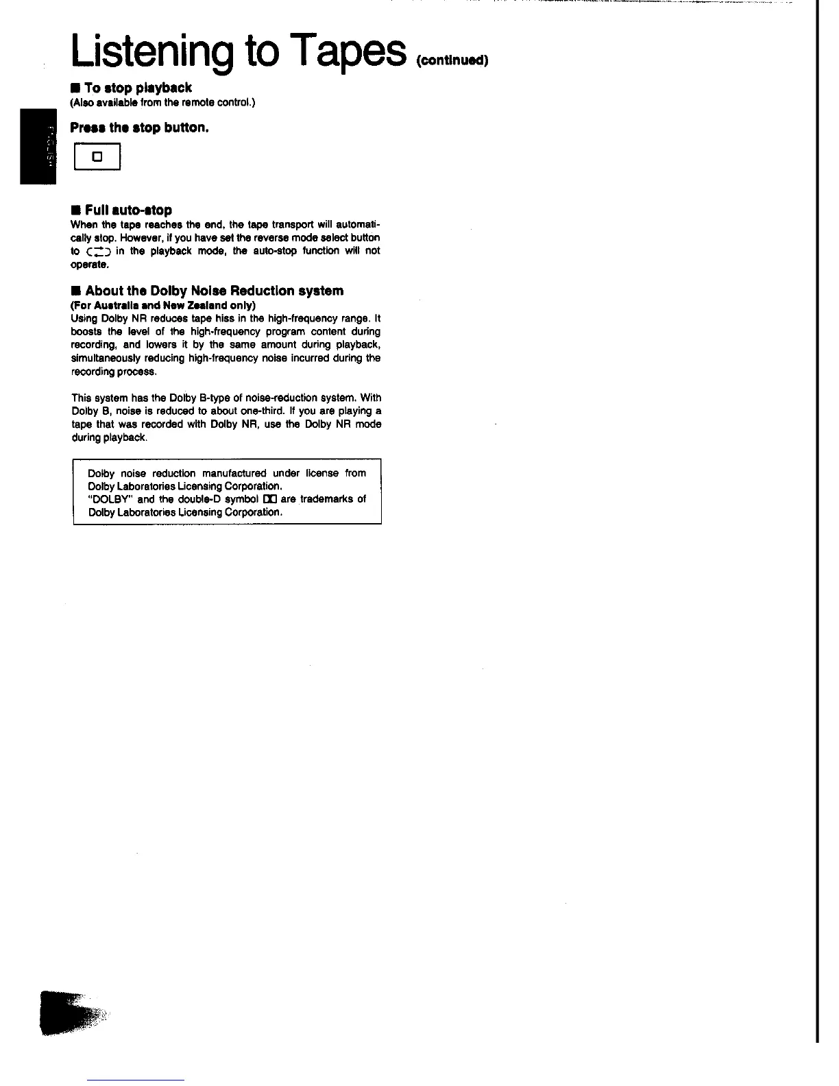 Panasonic SC-CH31 - To Stop Playback; Full Auto-Stop; About the Dolby Noise Reduction System