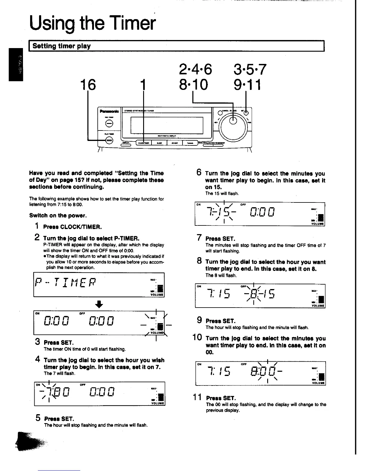 Panasonic SC-CH31 - Using the Timer; Setting Timer Play