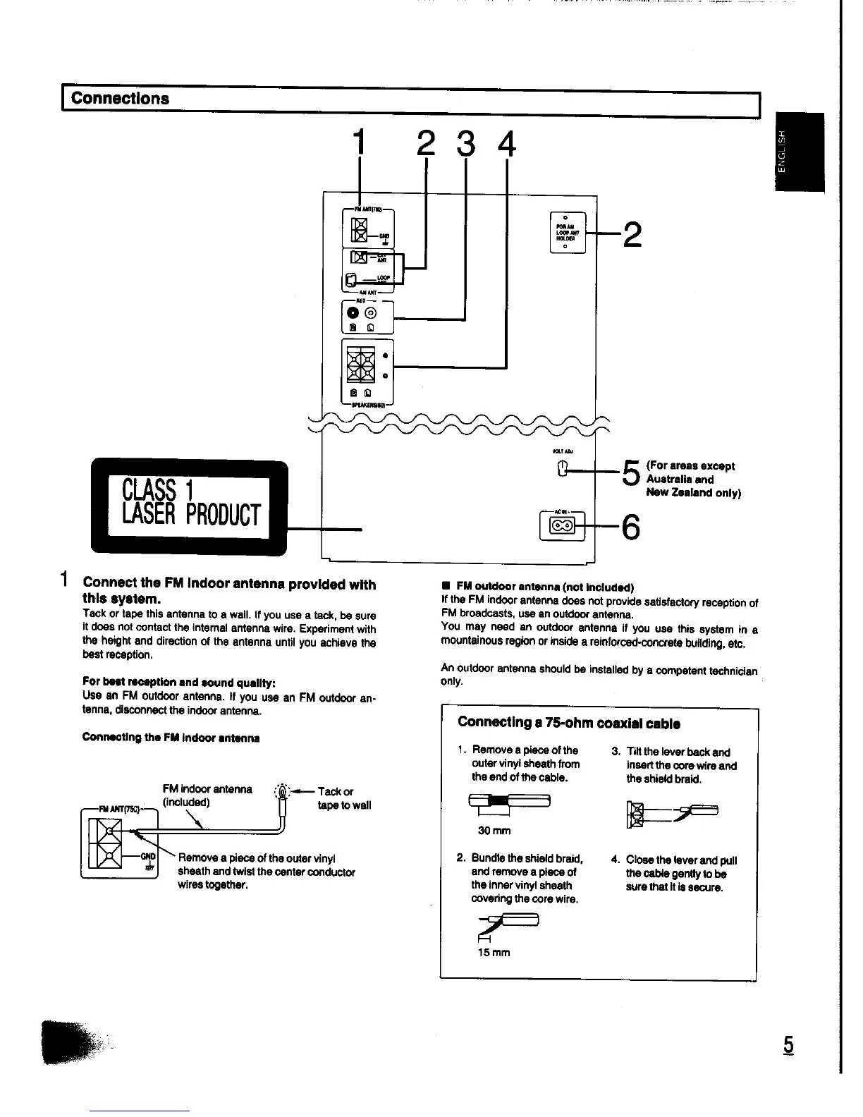 Panasonic SC-CH31 - Connections; Connect the FM Indoor Antenna Provided with this System; Connecting a 75-Ohm Coaxial Cable; FM Outdoor Antenna