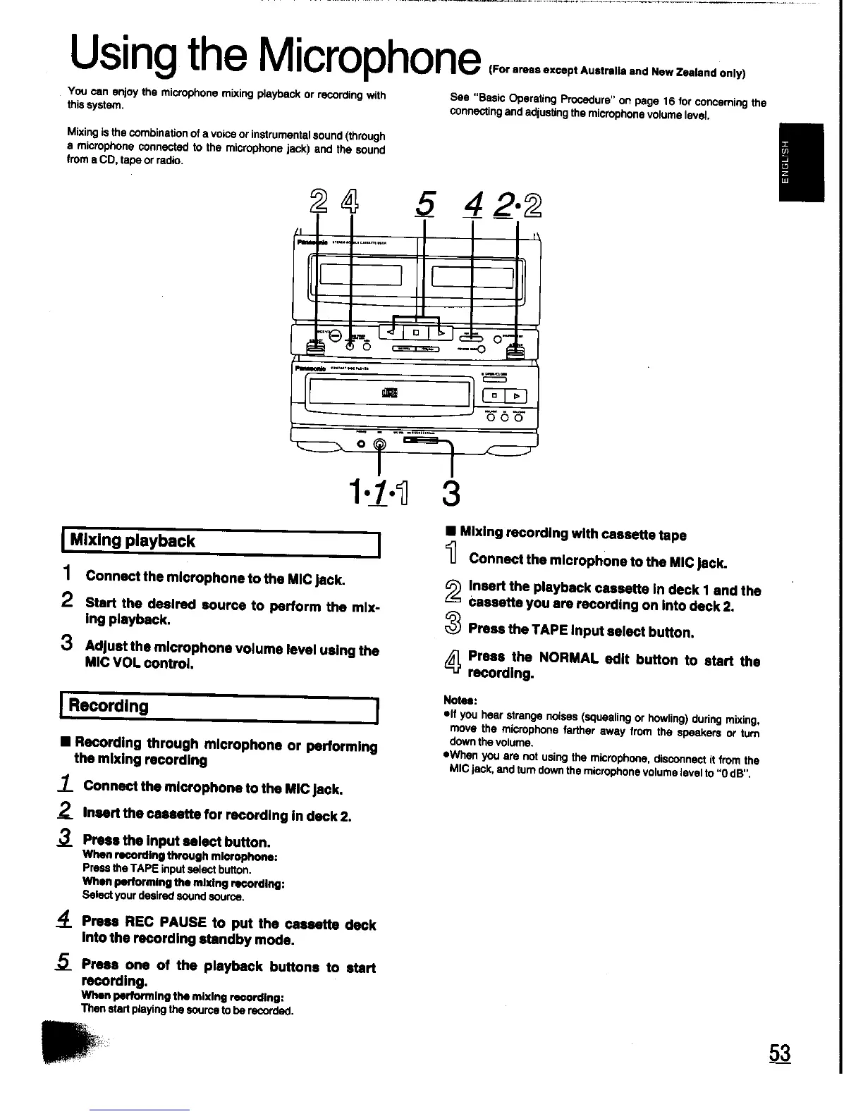Panasonic SC-CH31 - Using the Microphone; Mixing Playback; Recording