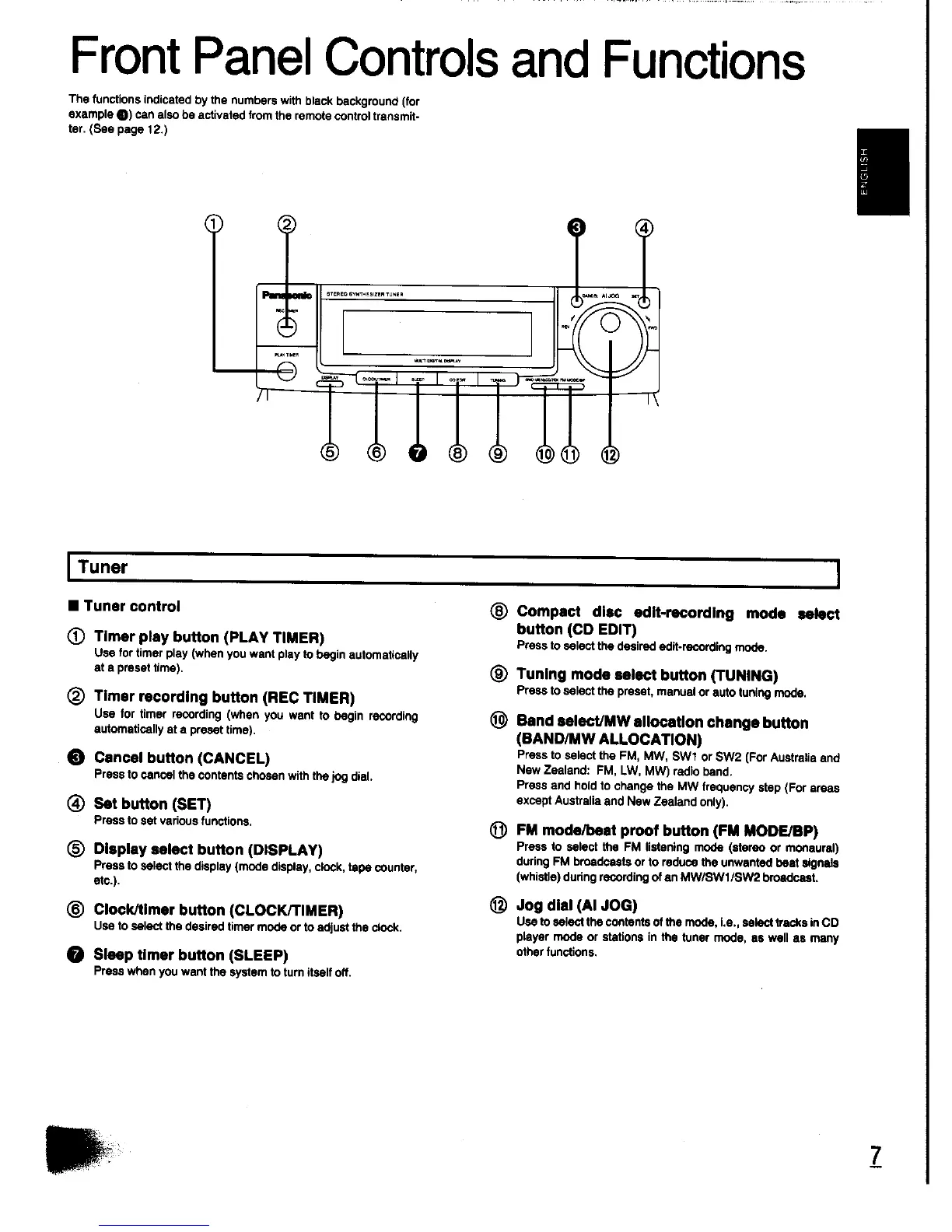 Panasonic SC-CH31 - Front Panel Controls and Functions; Tuner