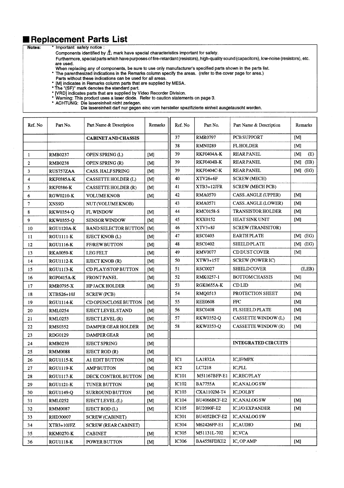 Panasonic SC-CH32 - Replacement Parts List: Integrated Circuits; Integrated Circuits Replacement Parts