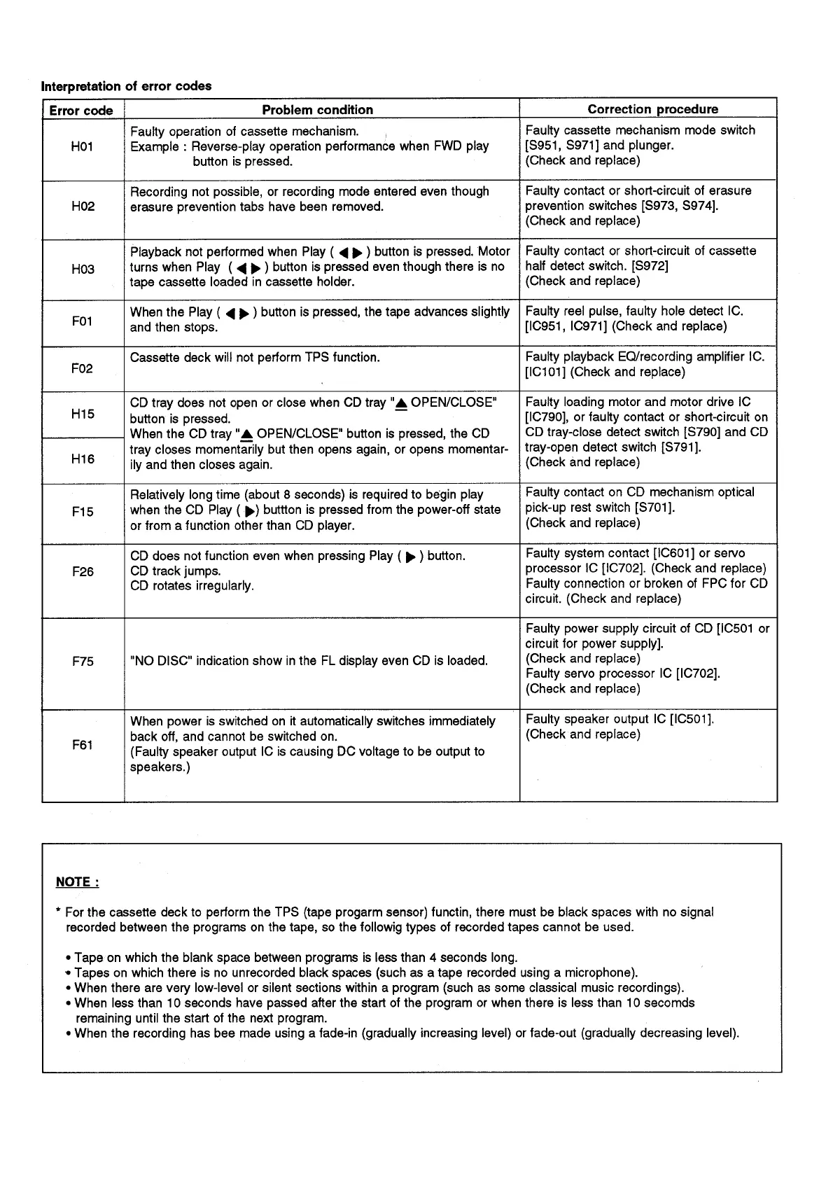 Panasonic SC-CH32 - Interpretation of Error Codes