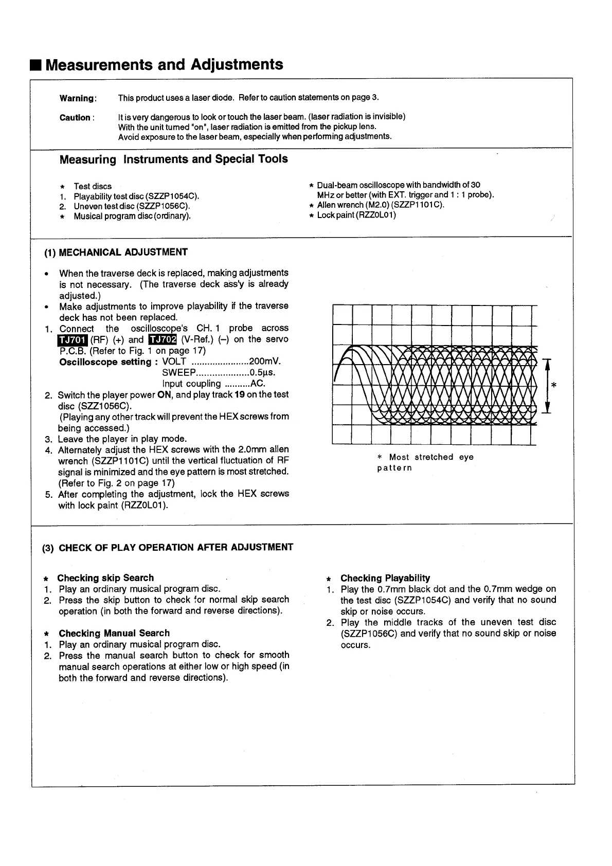 Panasonic SC-CH32 - Measurements and Adjustments; Mechanical Adjustment Procedures