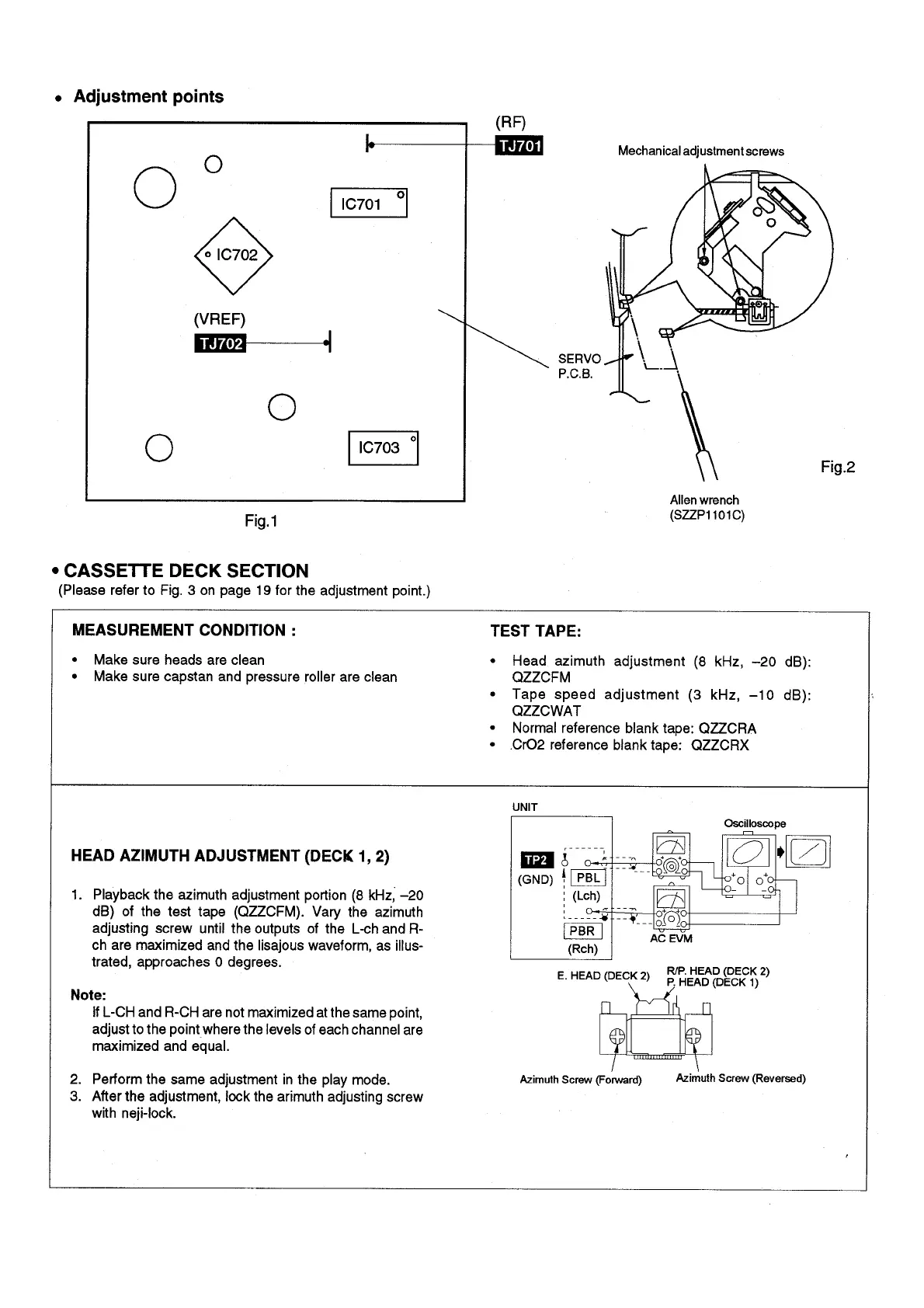 Panasonic SC-CH32 - Cassette Deck Adjustments; Cassette Deck Section Adjustments; Head Azimuth Adjustment