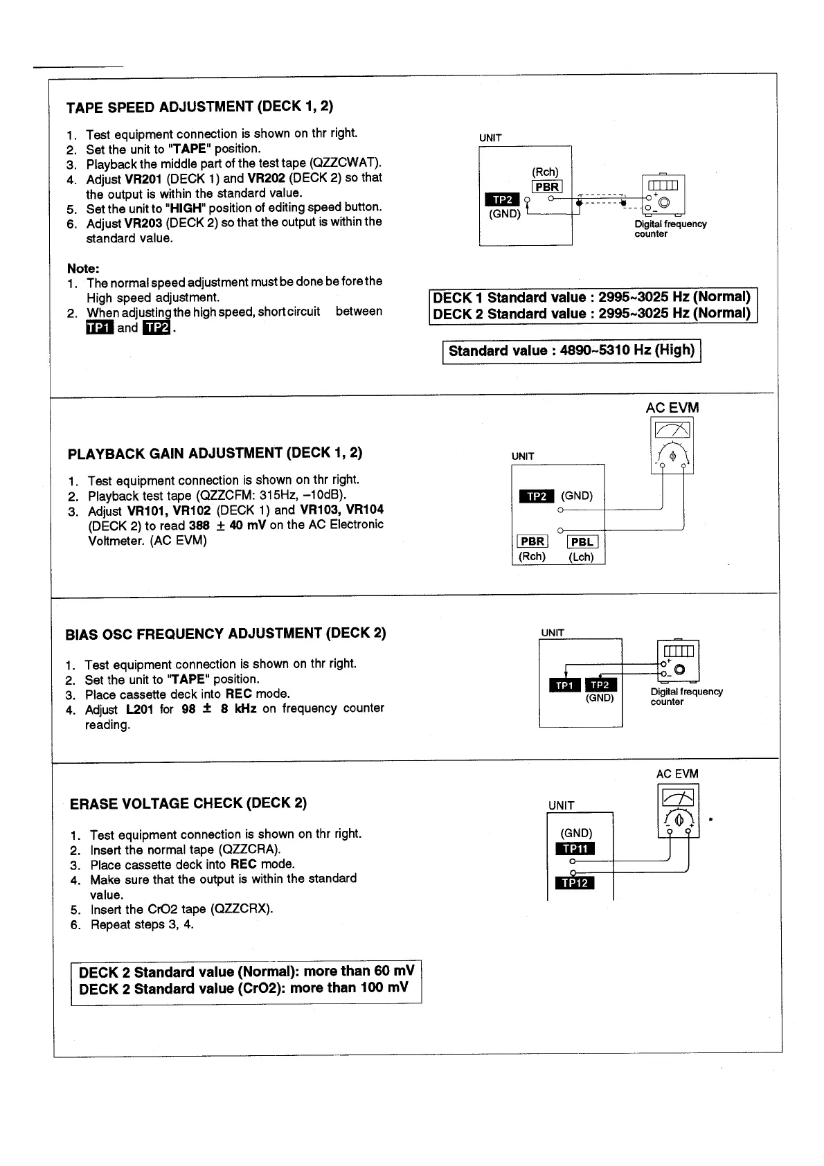 Panasonic SC-CH32 - Cassette Deck Adjustment Procedures; Tape Speed Adjustment; Playback Gain Adjustment