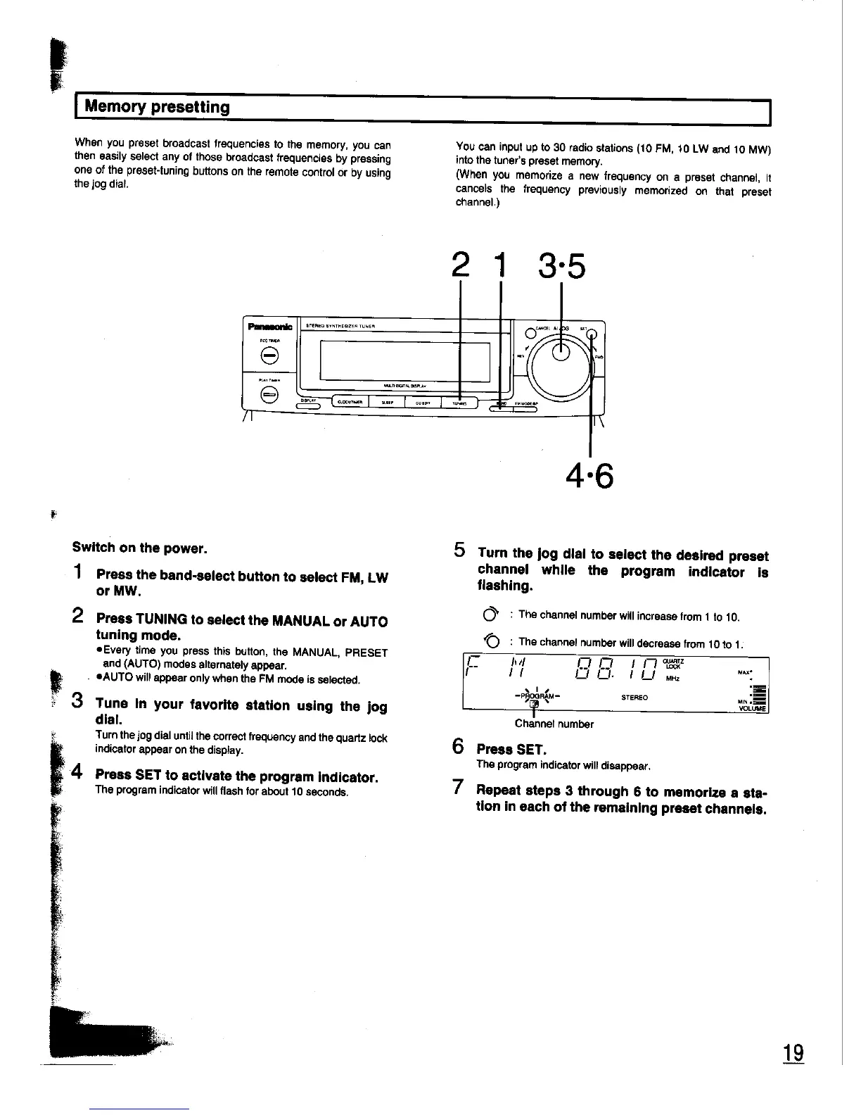 Panasonic SC-CH33 - Memory presetting